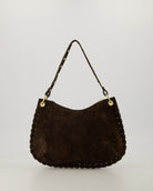 Casey - Suede - Schoudertas met studs - Donkerbruin
