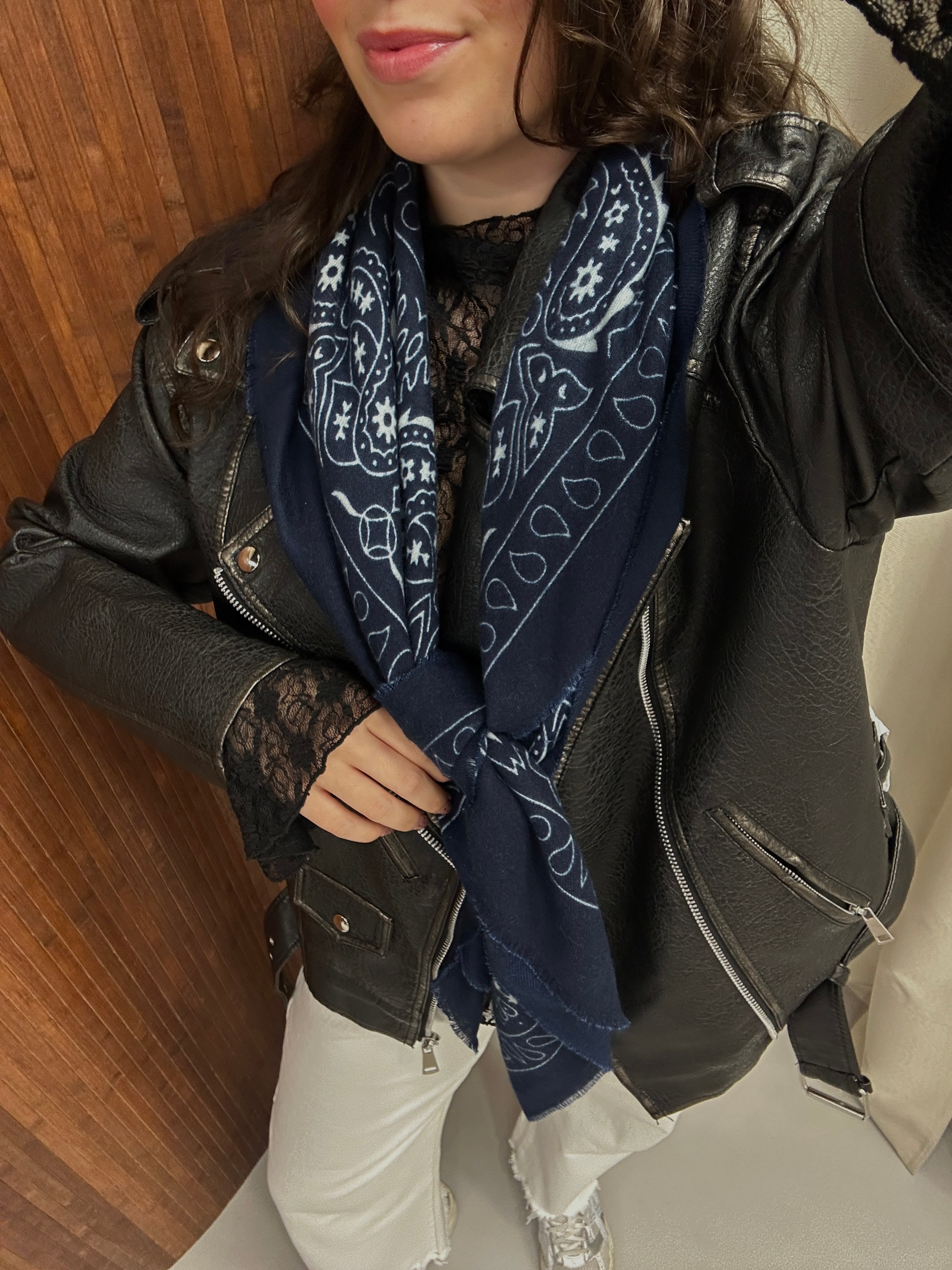 Deze sjaal met paisley motief geeft elke outfit een stijlvolle en tijdloze uitstraling. Het sierlijke patroon zorgt voor een speels maar elegant accent, perfect om zowel casual als geklede looks af te maken. Draag de sjaal los om de hals, geknoopt bij een blouse of nonchalant over een blazer of jas. Een veelzijdig accessoire dat moeiteloos te combineren is en elk seizoen tot zijn recht komt.