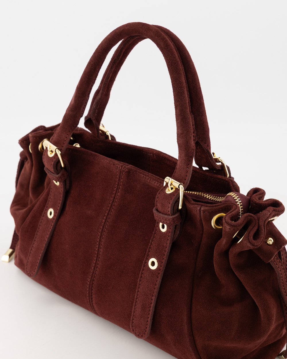 Reva is een leren handtas die ook gedragen kan worden als crossbody tas. Bij de tas zit een afneembaar en verstelbaar hengsel. De tas heeft een binnenvak met aan de binnenzijde een steekvak.