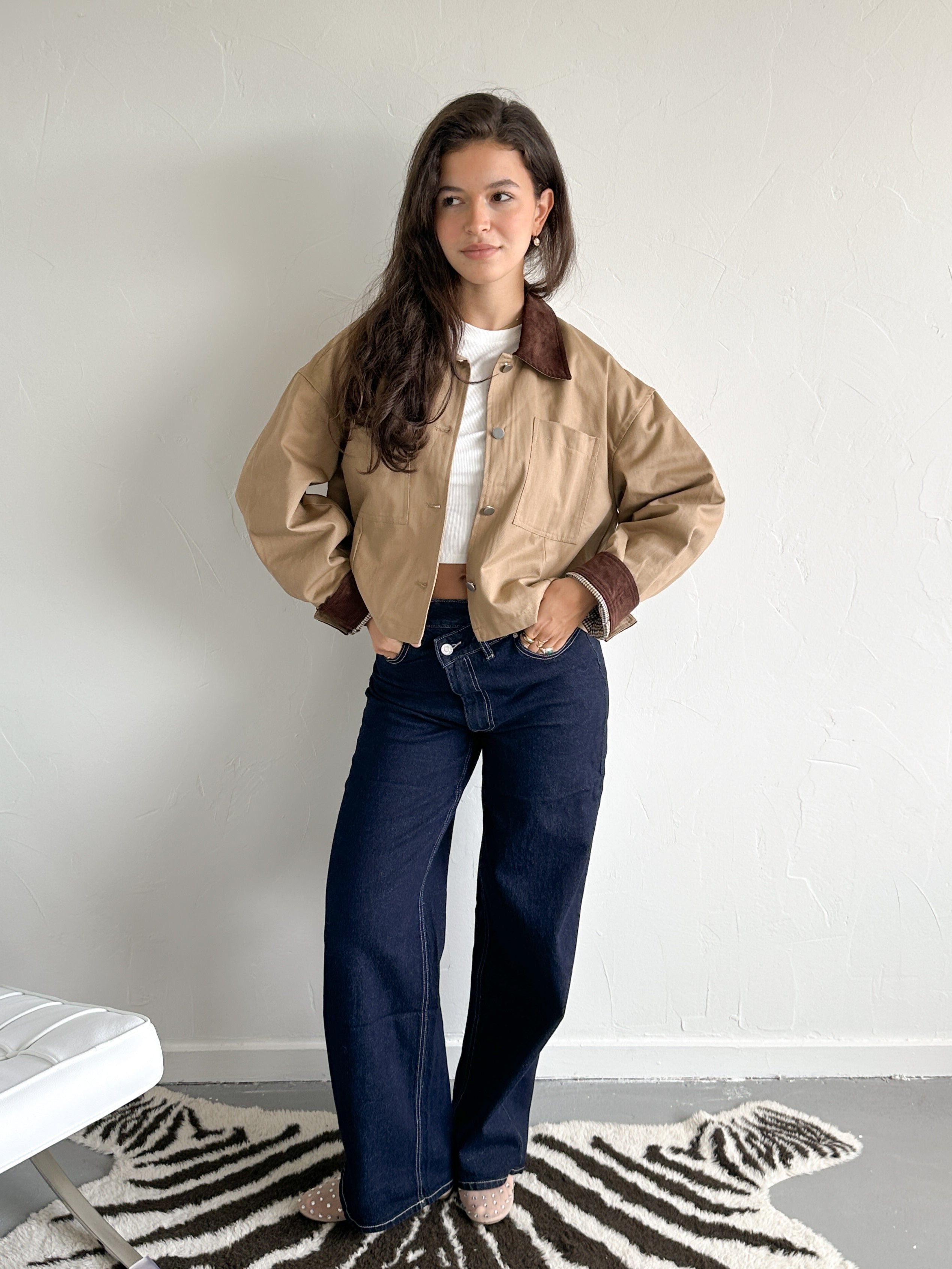 Dit korte jasje is een echte statement piece. De oversized fit en klassieke details aan de mouw en kraag geven ‘m die effortless cool look die je moeiteloos over elke outfit gooit. Perfect voor het tussenseizoen, of als finishing touch op je city look. Stylish, comfy én veelzijdig.