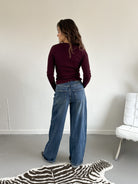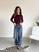 Elegante bruine top met een subtiele watervalhals en lange mouwen. De aangesloten pasvorm accentueert de vrouwelijke vormen, terwijl de zachte stretchstof zorgt voor comfort en bewegingsvrijheid. Een tijdloos item dat zowel casual als chic te stylen is – ideaal voor op kantoor of een avondje uit.