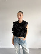Deze ruffle top is girly, luchtig en helemaal summer ready. De speelse ruches aan de voorkant zorgen voor een romantische touch, terwijl de open rug met striksluiting een echte eyecatcher is. Perfect voor een zomerse avond, festival of diner onder de zon.