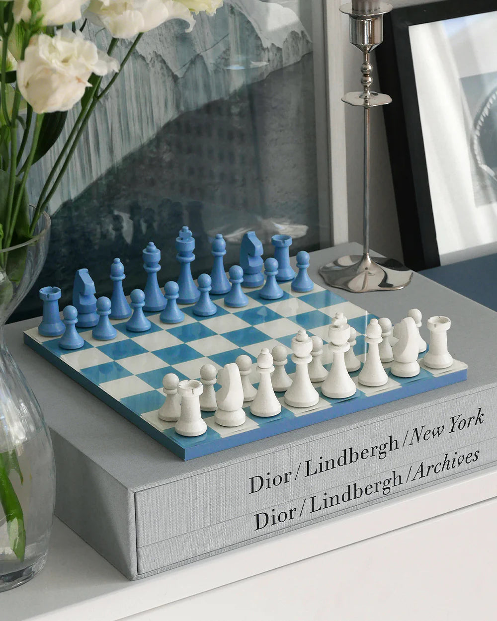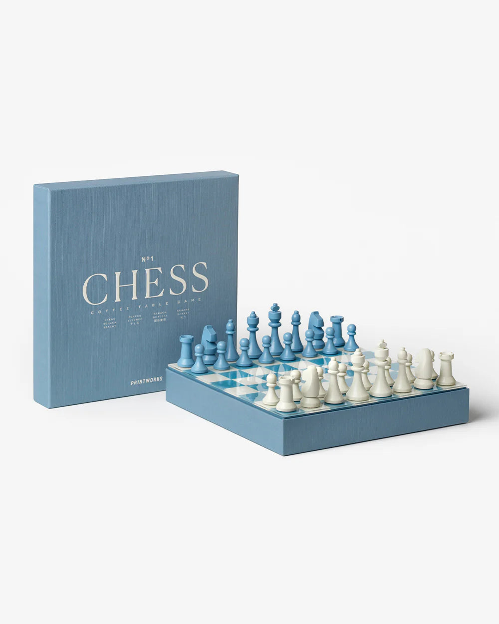 Classic Chess in een stijlvolle Dusty Blue-kleurstelling schaakbord. De set bestaat uit houten speelstukken en een schaakbord van MDF met een gemonteerd acryl blad van 24x24 cm. Een perfecte mix van klassieke functionaliteit en modern design. Inclusief duidelijke instructies in het Engels, Frans en Duits. Geschikt voor twee spelers en aanbevolen voor kinderen vanaf 5 jaar.