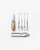 Ontdek de Essentiële Set voor liefhebbers van zeevruchten, slim vermomd als een elegant doosje in de vorm van een boek. Het is de perfecte samensmelting van esthetiek en functionaliteit. Bij het openen ervan zul je alle essentiële gereedschappen ontdekken voor jouw geliefde zeevruchtenfeestjes. Alle gereedschappen zijn gemaakt van roestvrij staal en kunnen in de vaatwasser worden gereinigd.
