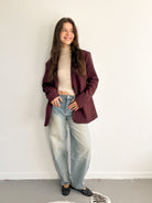 Deze oversized blazer is alles behalve standaard. Het unieke zakje op de achterkant geeft ‘m een verrassende, edgy twist, terwijl de oversized fit zorgt voor een relaxte maar stijlvolle uitstraling. Perfect om casual te dragen met jeans of juist chic te combineren met een pantalon of jurk. Met deze blazer maak je gegarandeerd een statement.