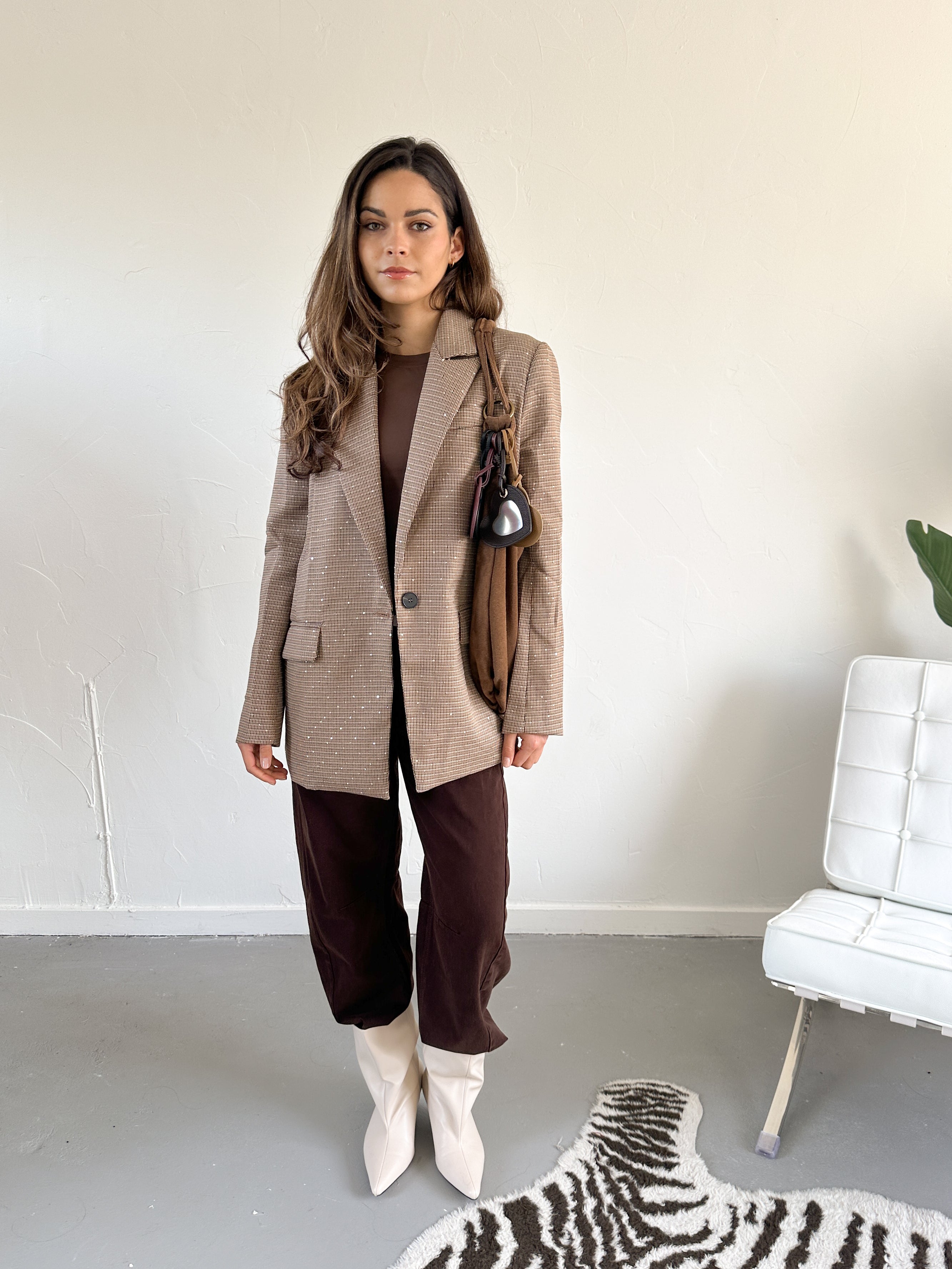 Senna ruit blazer met steentjes
