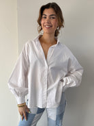 Deze witte blouse met ballonmouwen is een echte must-have! De zachte stof en speelse mouwen zorgen voor een comfortabele en vrouwelijke look. We love it!