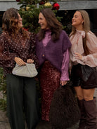 Deze verfijnde stippenblouse brengt een speelse en vrouwelijke look dankzij de combinatie van een elegant stippenpatroon, sierlijke volants en een bijpassende sjaal. De luchtige stof valt soepel en zorgt voor een romantische, elegante uitstraling.