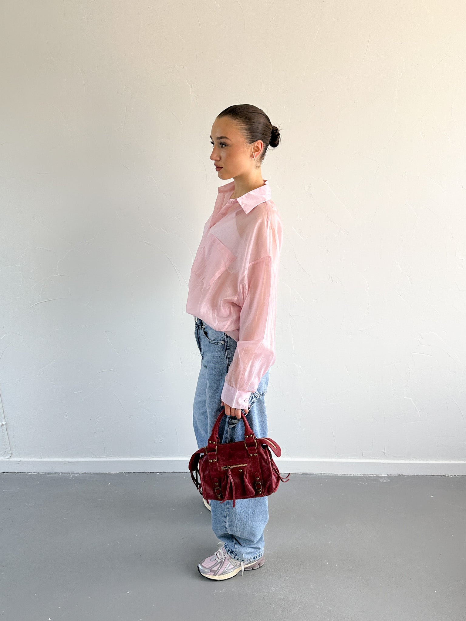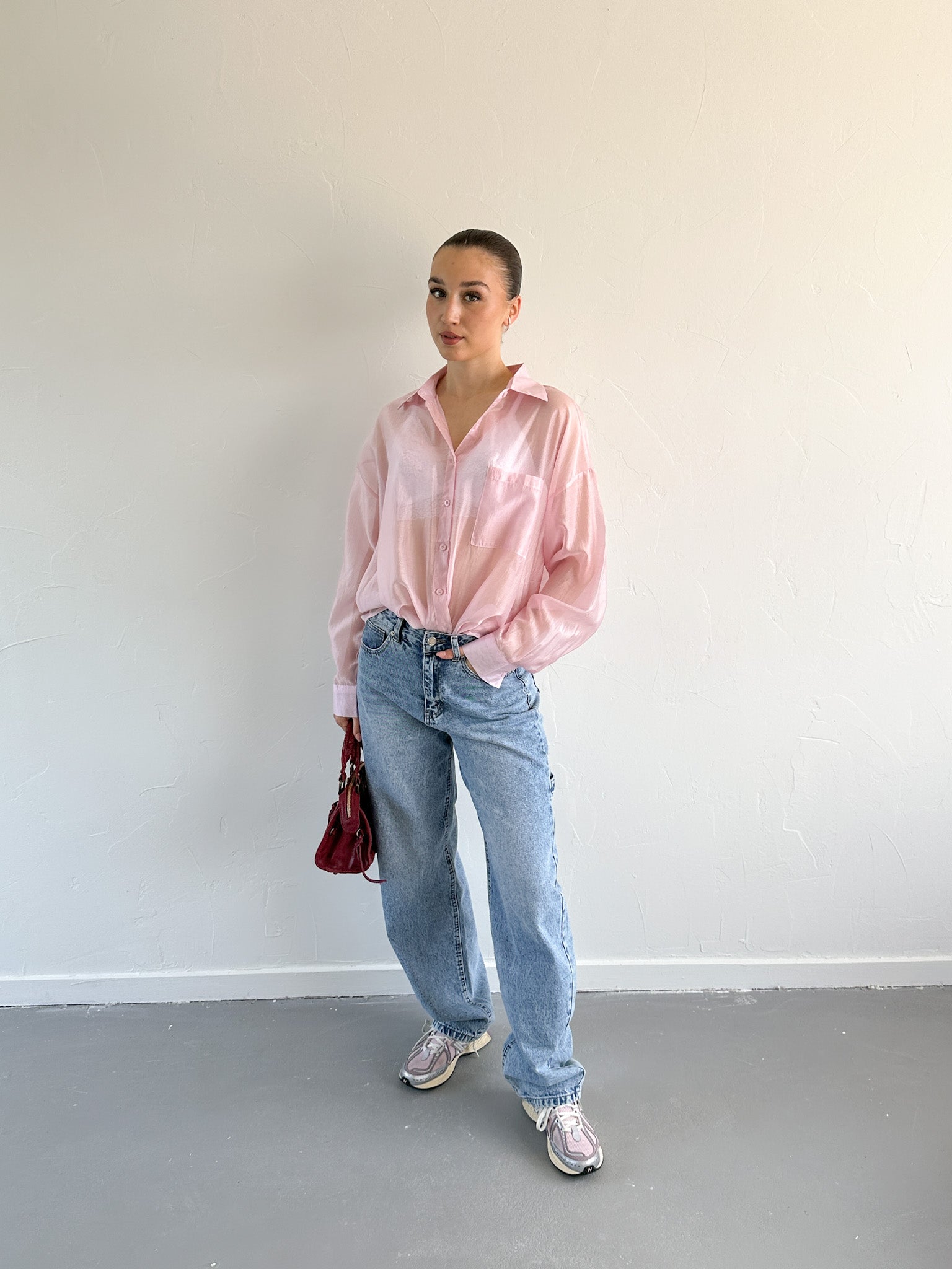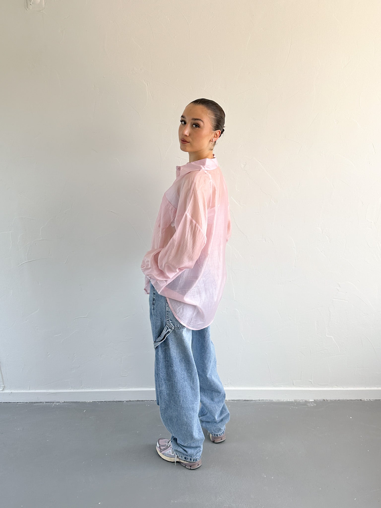 Deze roze blouse is luchtig, elegant en helemaal on-trend. De licht doorlatende stof geeft een subtiele, vrouwelijke touch en maakt ‘m perfect voor zonnige dagen of een avondje uit. Draag ‘m los over een bralette, in je favoriete jeans of geknoopt voor een speelse look.