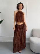 De Mikky rok is alles wat je zoekt in een maxi rok: luchtig, elegant en heerlijk zwierig. De soepelvallende stof beweegt prachtig met je mee en de taille zorgt voor een flatterende fit. Combineer ‘m met de Mikky top voor een stunning two piece look, of draag ‘m los met een basic top of blouse – net zo mooi!