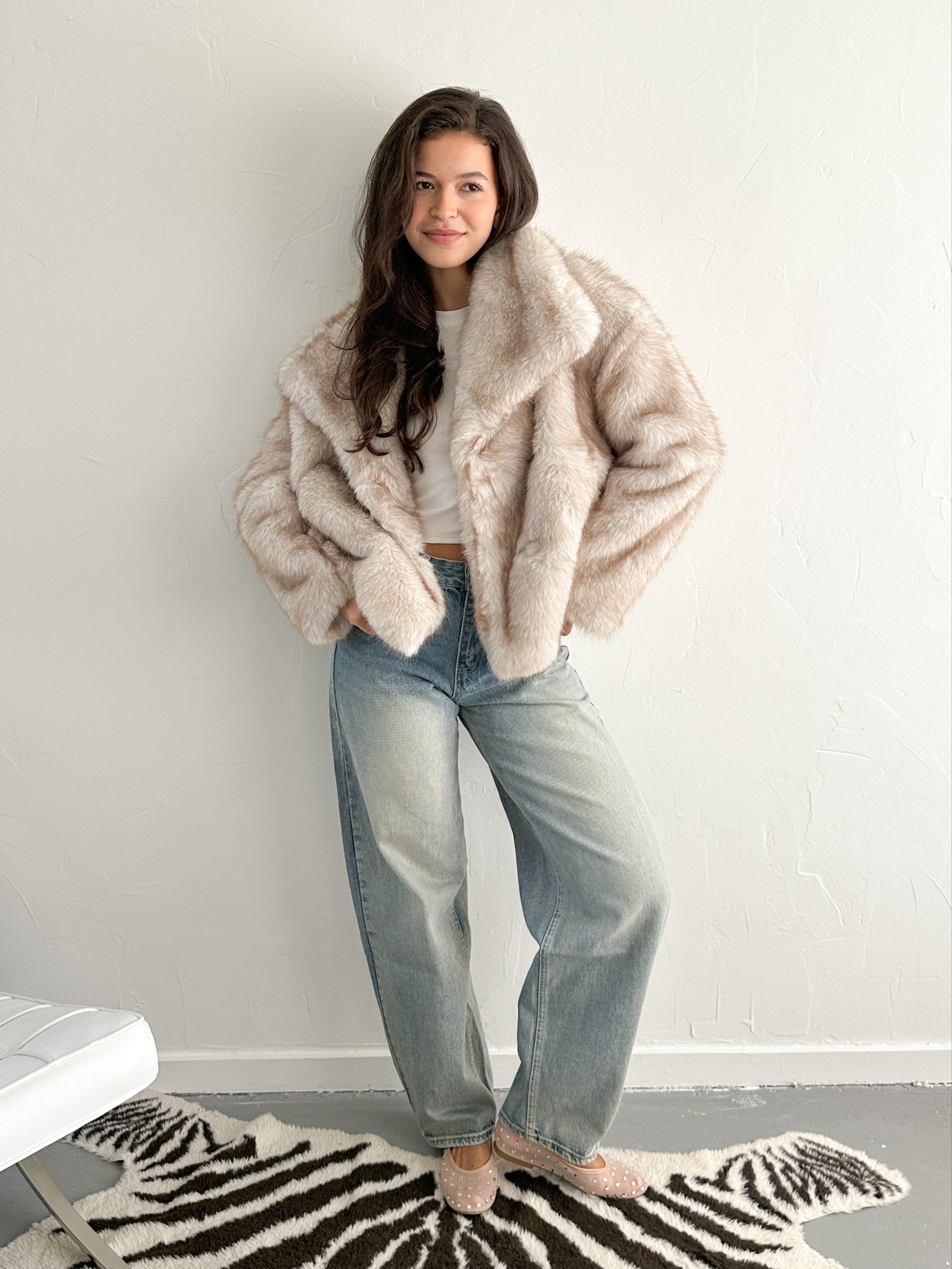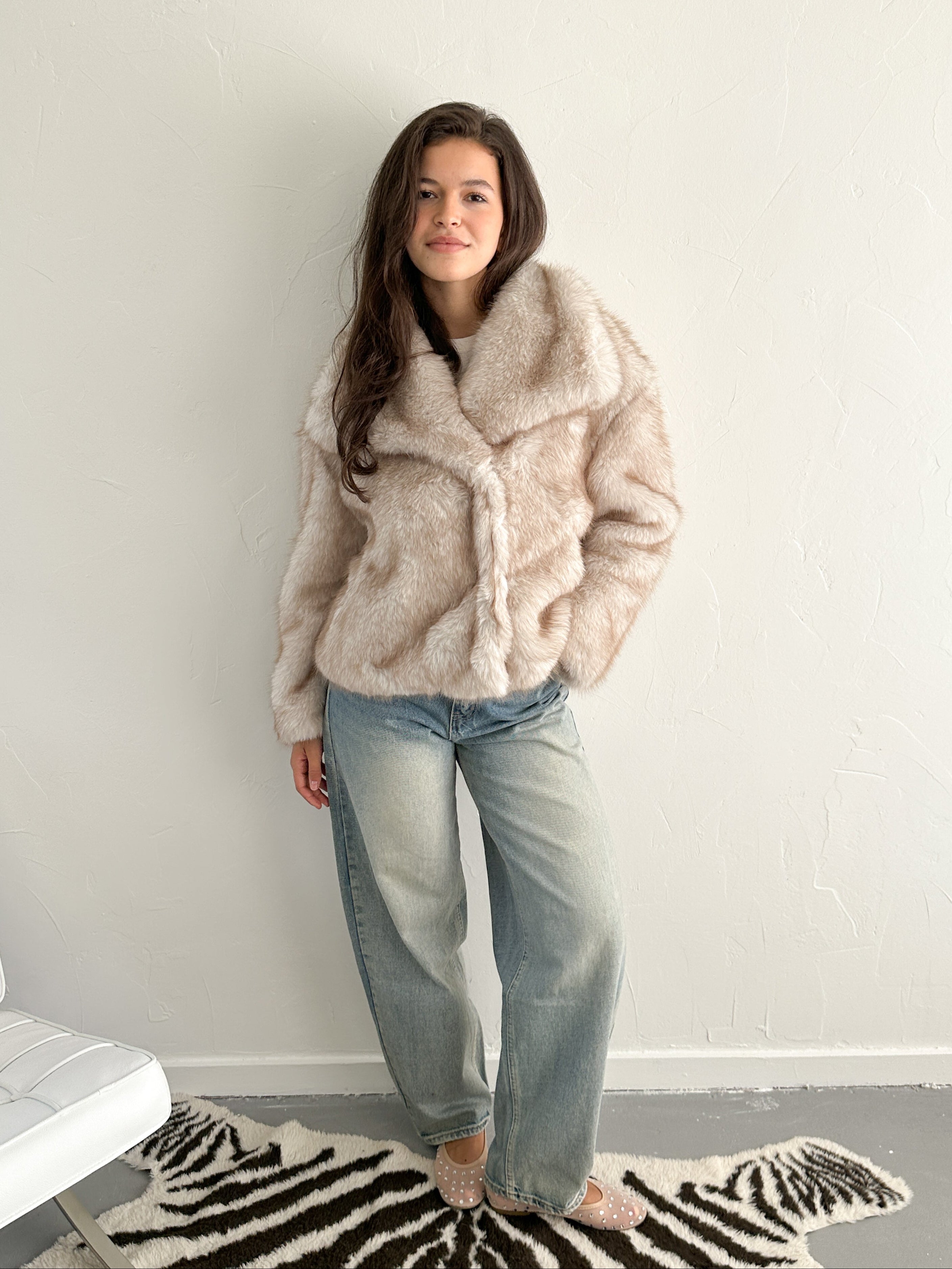 Emily faux fur jas beige