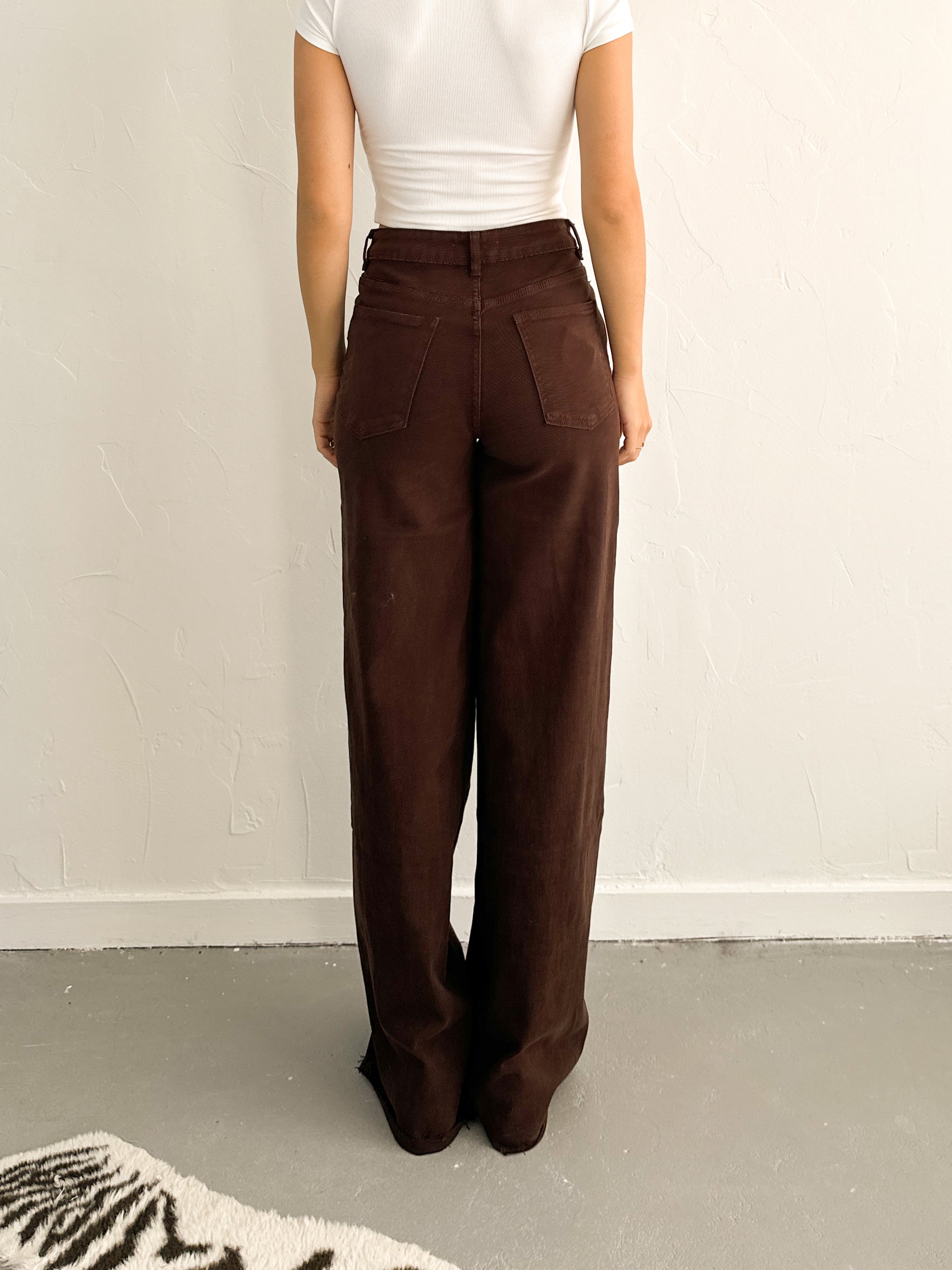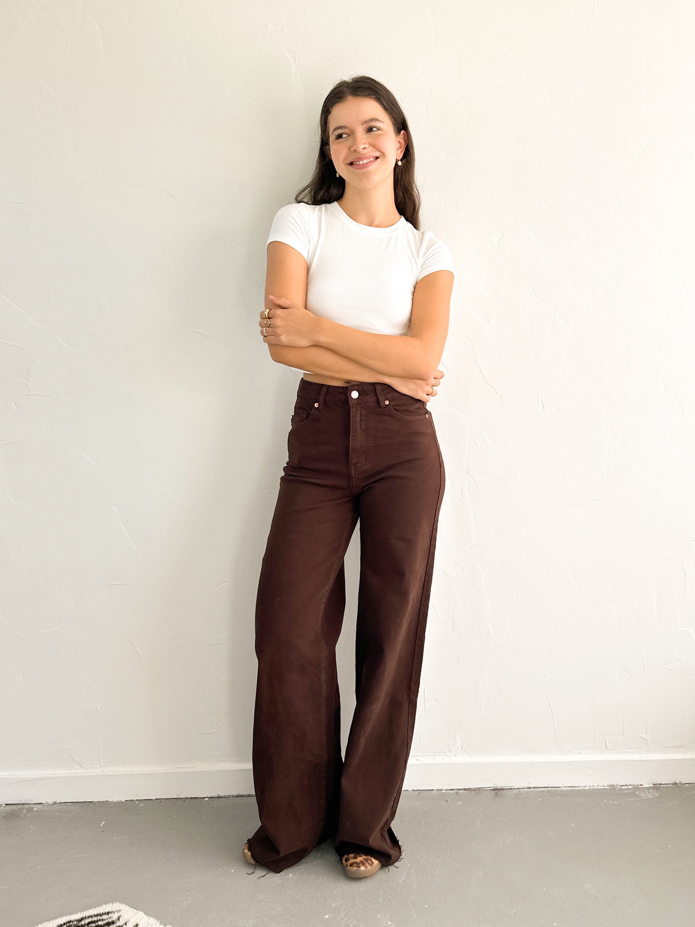 Deze wide leg jeans in bruin is dé denim must-have van nu. De extra long lengte geven ‘m een edgy, fashion-forward look, terwijl de stretchstof zorgt voor ultiem draagcomfort. Perfect te combineren met een basic top voor een casual outfit of met een blazer voor een stijlvolle twist. Een broek die zowel comfy als trendy is, win-win!