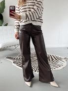 Deze leren broek met lichte flare fit is hét item voor een krachtige, stijlvolle look. De faux leather stof geeft een luxe uitstraling, terwijl de subtiele flare zorgt voor een vrouwelijke, moderne pasvorm. Perfect te combineren met een knit, blouse of blazer — deze broek maakt elke outfit instantly chic. 🖤✨