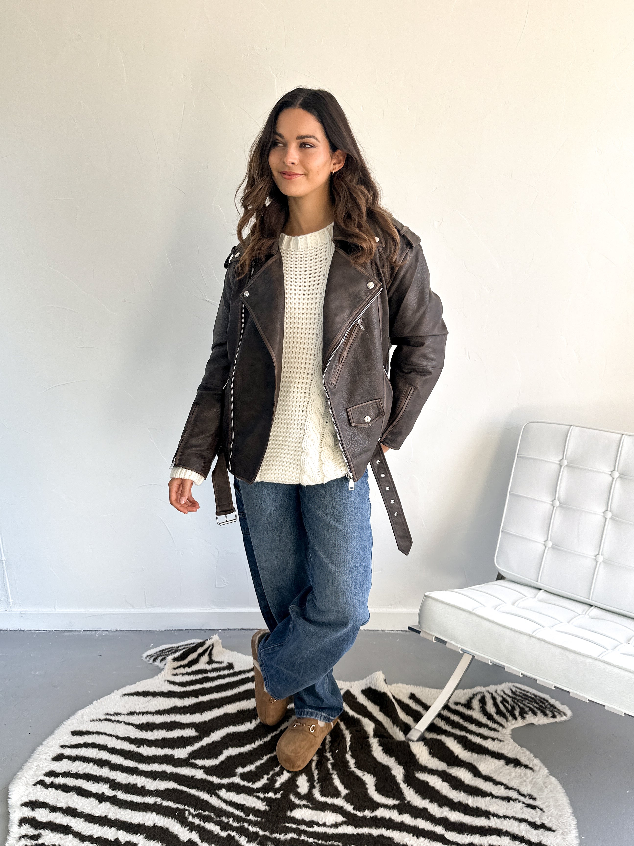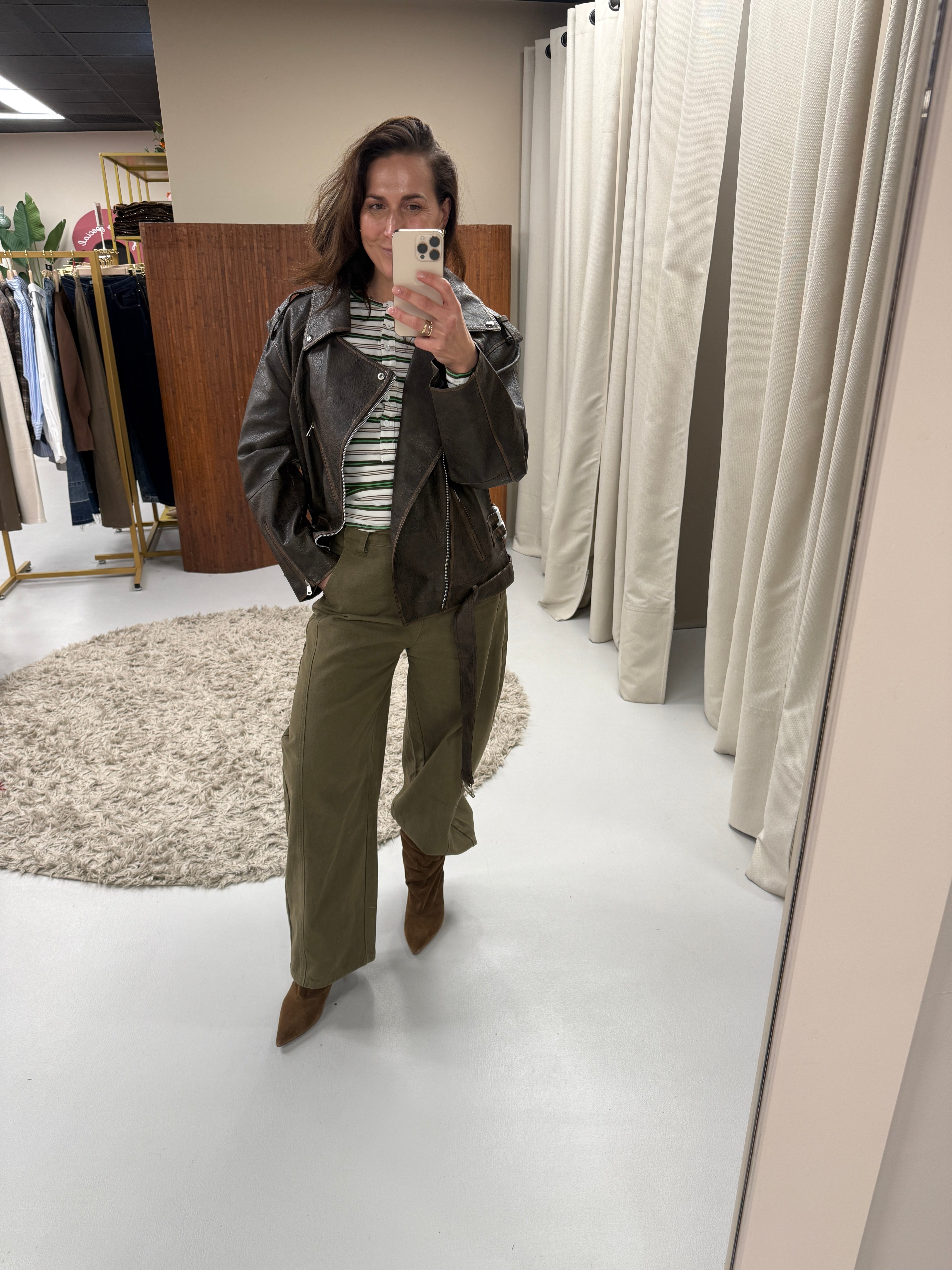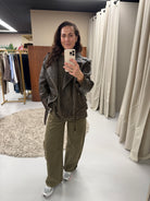 Dit imitatie leren jack is een echte klassieker met een edgy touch. De rijke bruine kleur geeft ‘m een warme en stijlvolle uitstraling, terwijl de leather look zorgt voor die stoere vibe. Een jack dat je seizoen na seizoen blijft dragen.