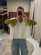 Dit vest heeft een moderne, boxy fit met een kortere lengte en een ontspannen uitstraling. Het model valt wijd en recht, met verlaagde schoudernaden en brede mouwen voor een nonchalante look. De knoopsluiting aan de voorkant geeft het vest een tijdloze touch, terwijl de zachte, gebreide kwaliteit zorgt voor comfort.