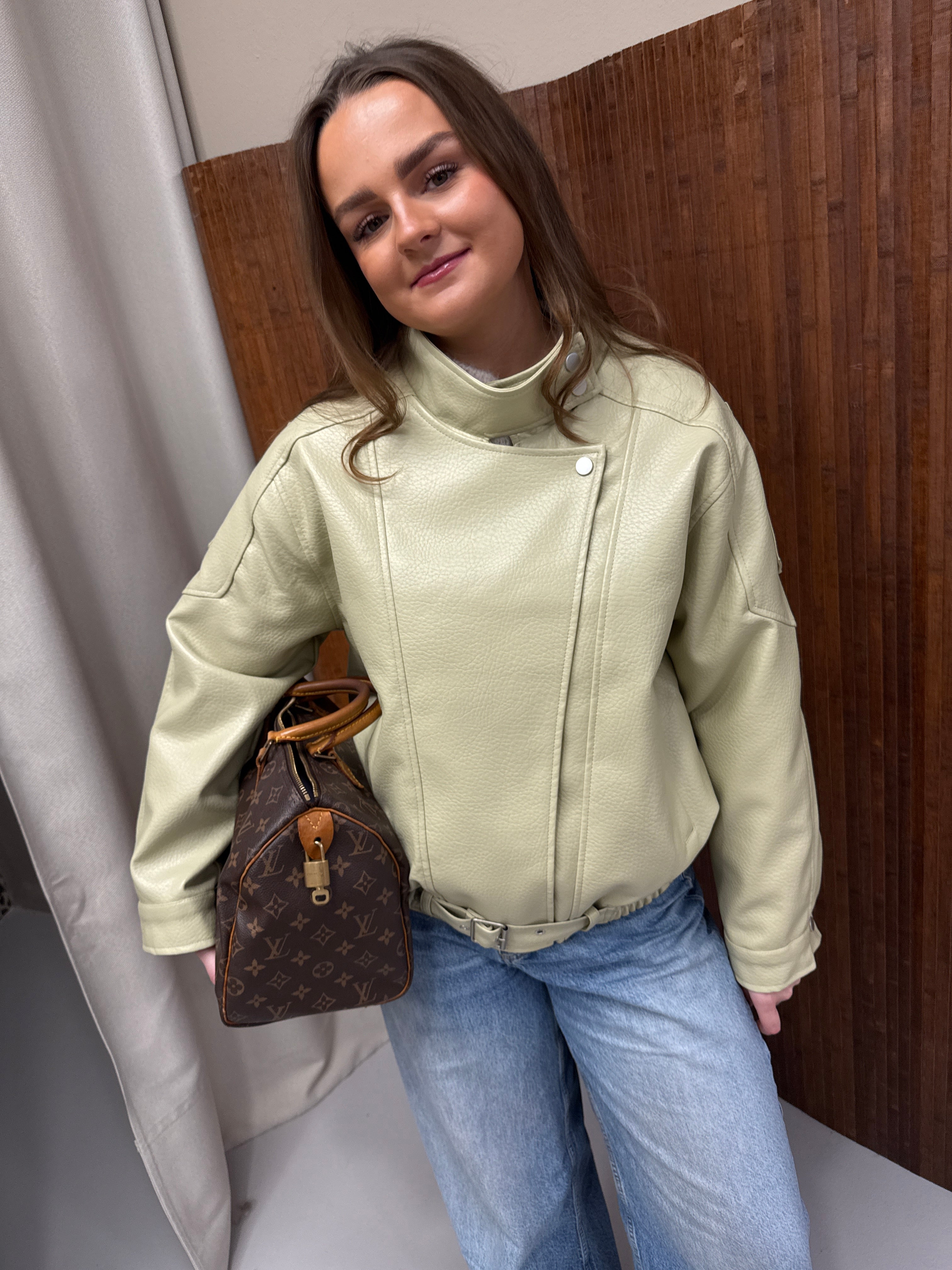 Jess leren jas Pistache
