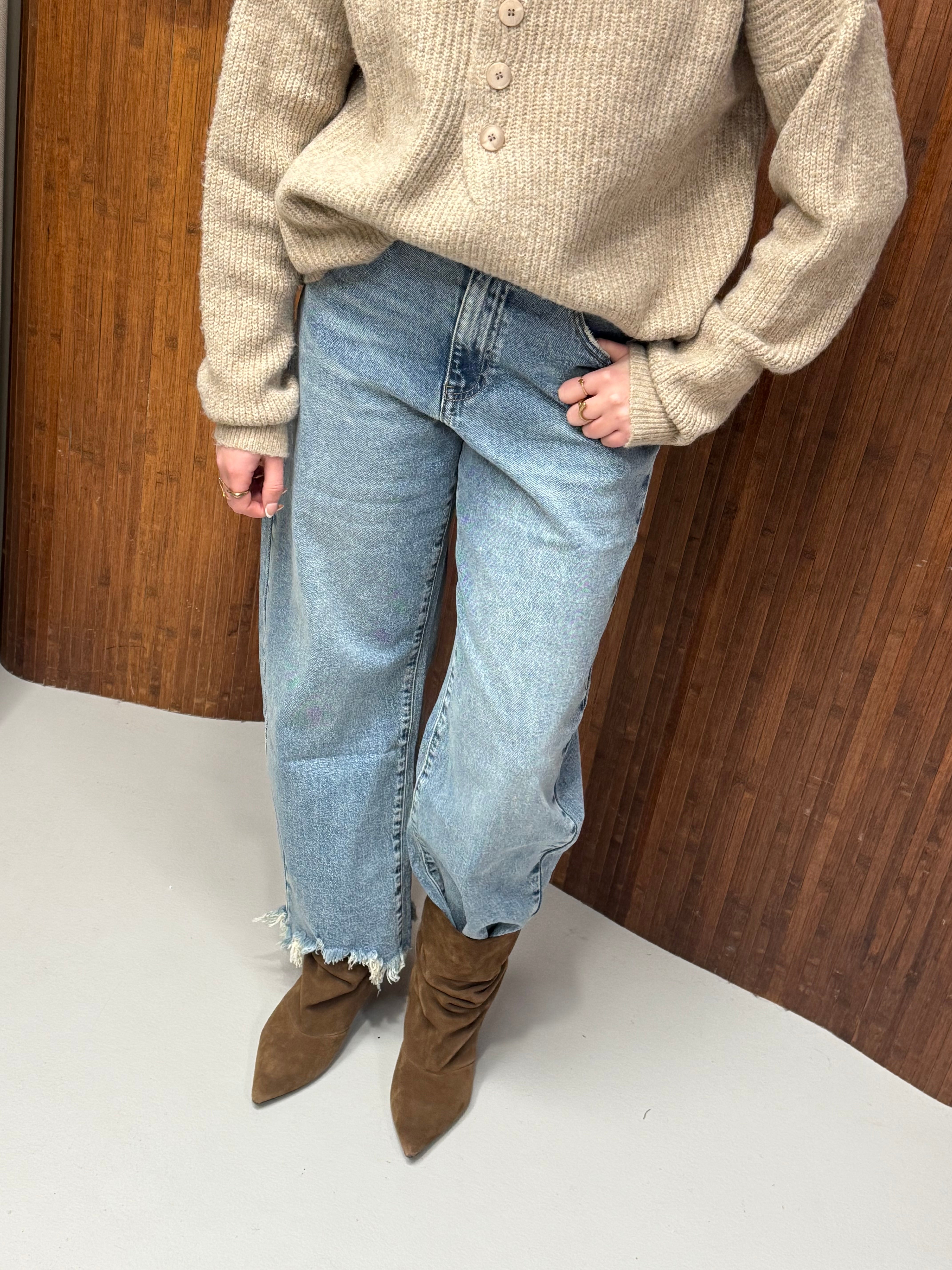 Denim jeans met een ruime, ronde pasvorm en een verkorte lengte. De broek valt los bij heup en bovenbeen en loopt subtiel smaller toe richting de enkel. De cropped fit zorgt voor een moderne en nonchalante uitstraling.
