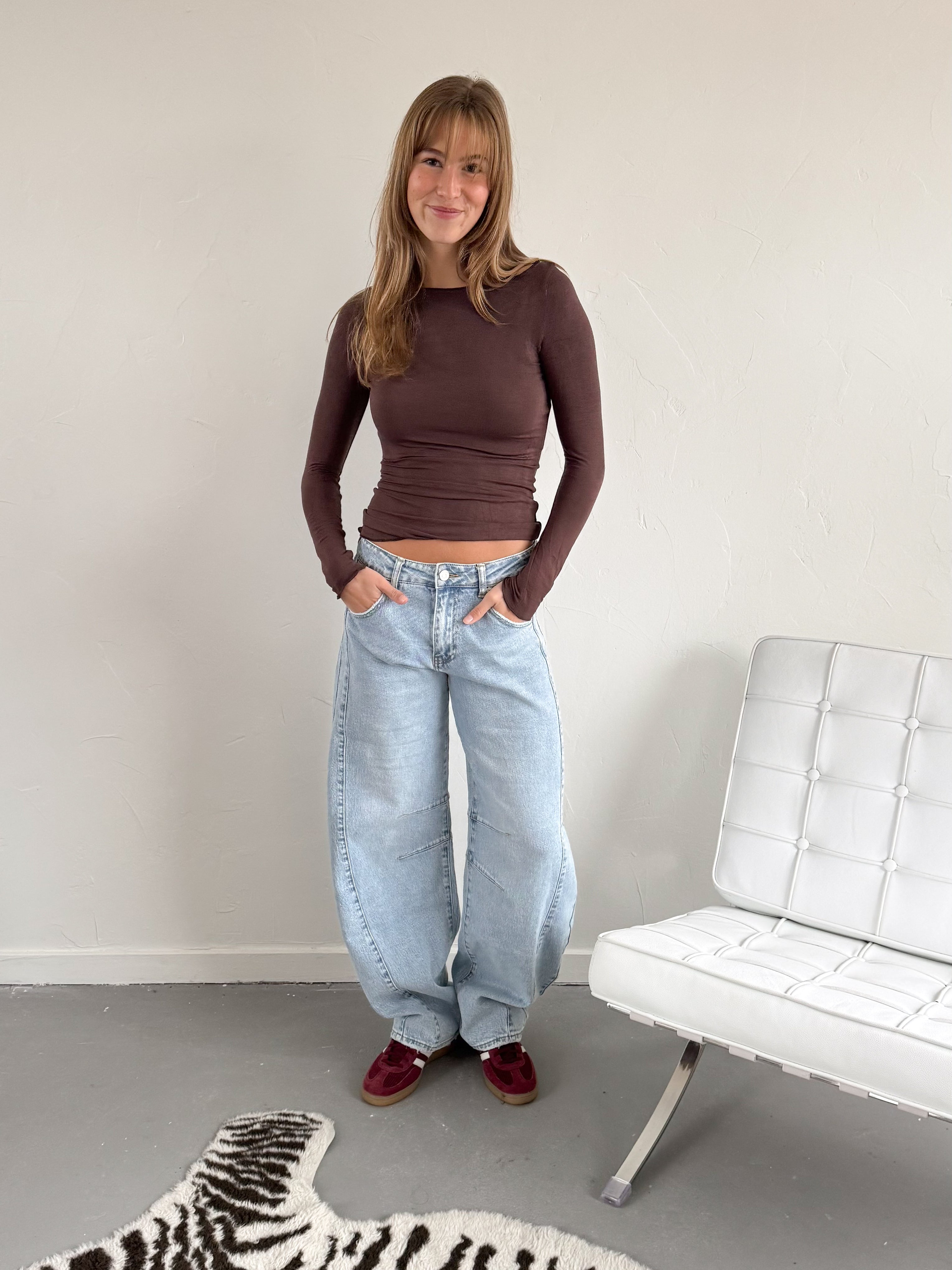Deze barrel balloon jeans in lichtblauw is de perfecte combinatie van trendy en comfortabel. De ronde, iets taps toelopende pijp geeft een speelse, moderne look, terwijl de high waist zorgt voor een flatterende fit. De lichte denimkleur maakt ‘m ideaal voor elke dag — effortless, stylish en super easy te combineren. 💙✨