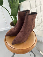 Deze bruine laarzen zijn een echte essential. De elegante vorm en het kleine hakje geven ze een vrouwelijke touch, terwijl de neutrale kleur ervoor zorgt dat je ze eindeloos kunt combineren. Perfect onder een jurk, rok of jeans – deze boots tillen elke outfit subtiel naar een hoger level.