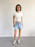 Deze blauwe denim short is een echte zomerklassieker. Het stretchy denim voelt comfortabel aan en de frisse kleur laat zich moeiteloos combineren met al je favoriete tops. Of je nu gaat voor casual met een T-shirt of een chique look met een blouse – deze short kan altijd.