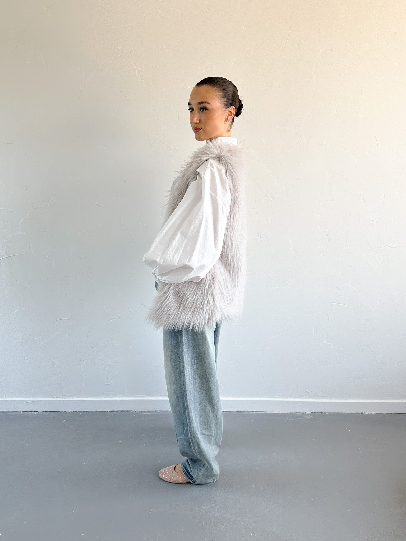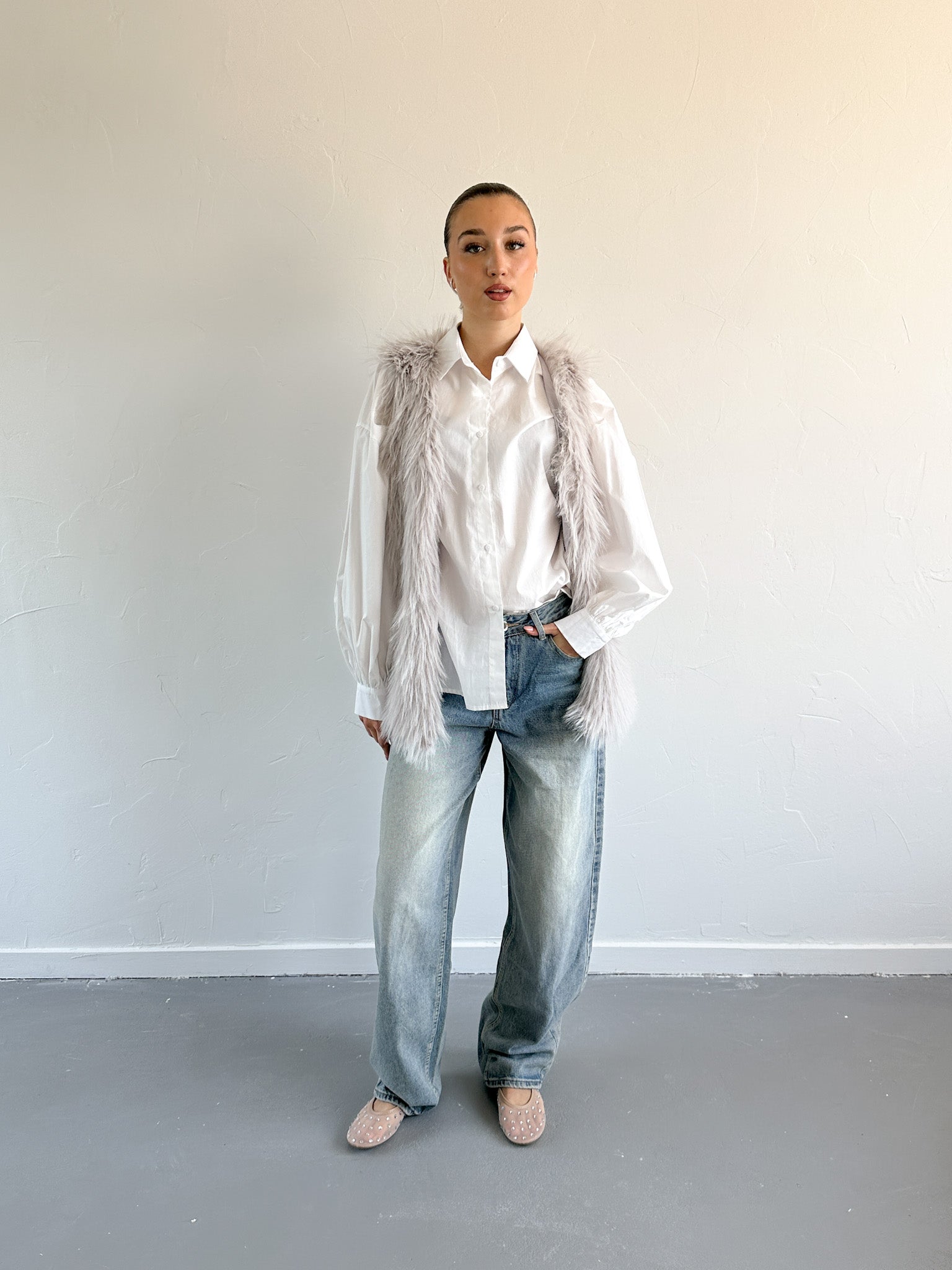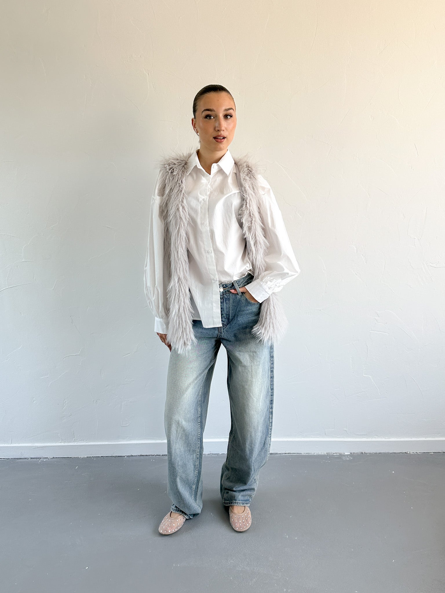 Dit fluffy gilet in het grijs is een echte must voor layering lovers. De zachte stof maakt elke outfit meteen cozy én fashionable. Draag ‘m over een basic top, blouse of zelfs je hoodie voor die comfy-but-cute feel. Perfect voor herfstige dagen, festivals of gewoon lekker thuis.