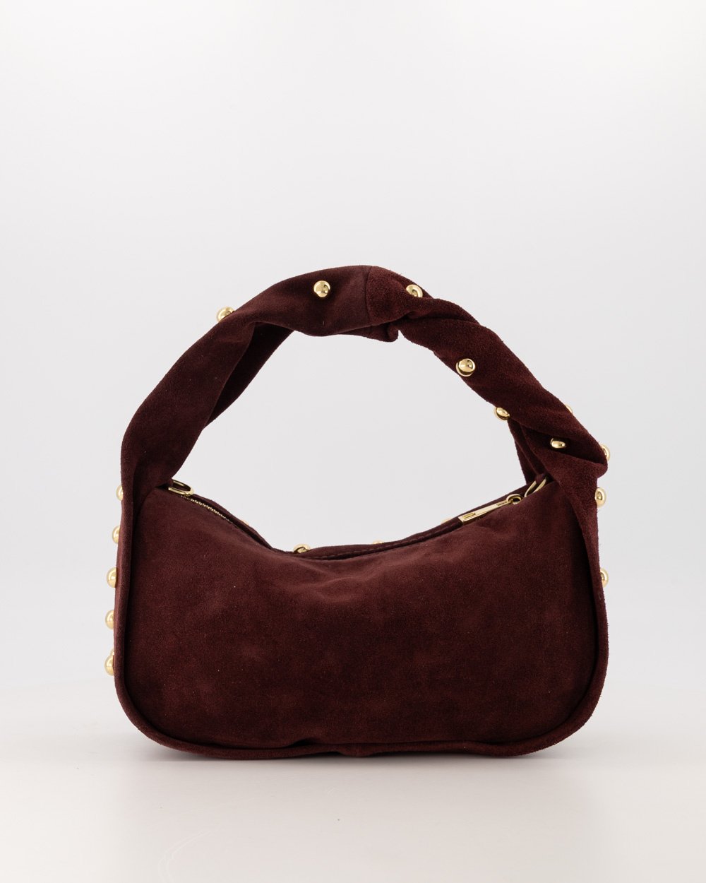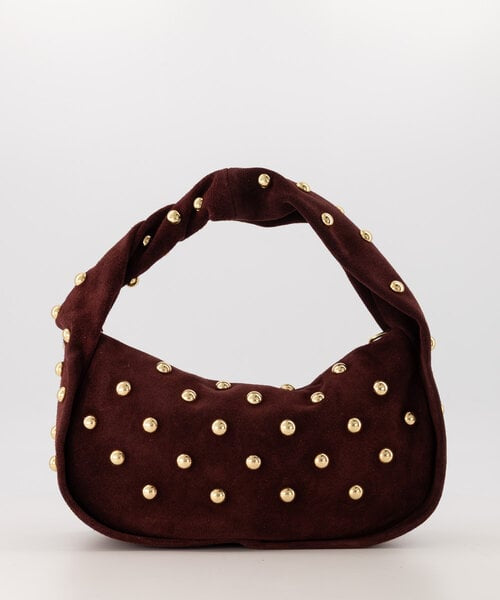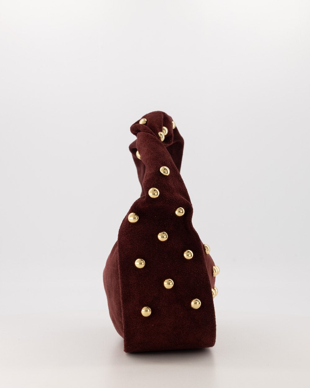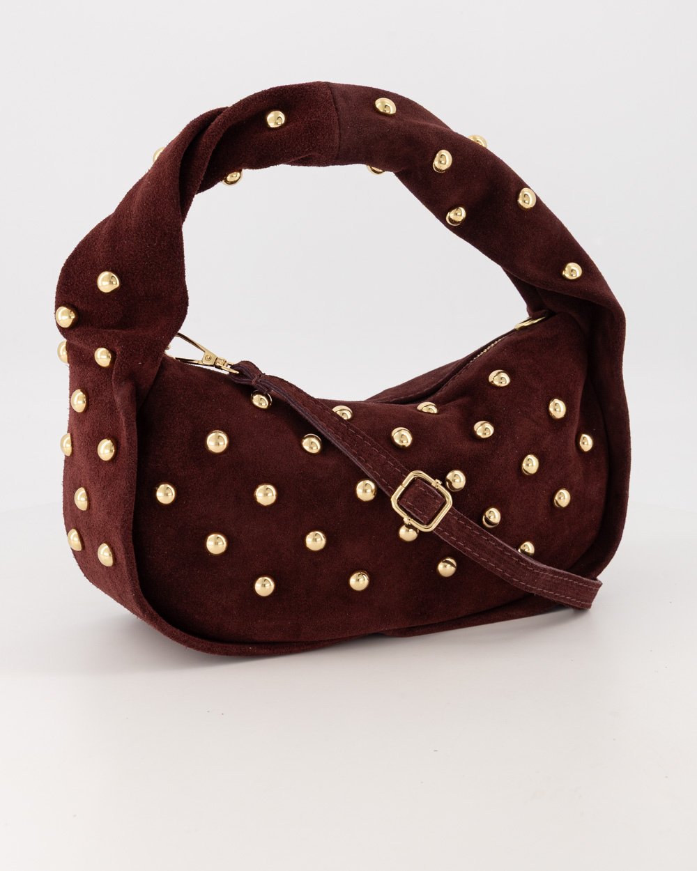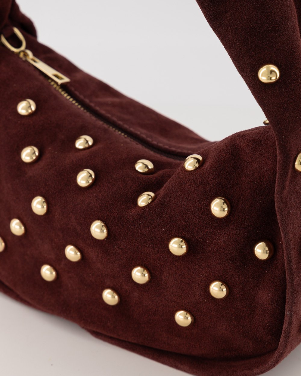 Lottie - Suede - Schoudertas met studs - Bordeaux