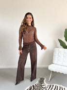 Deze mesh top met lange mouw in het bruin is stijlvol, stretchy en super veelzijdig. De doorschijnende stof geeft een speelse maar chique look en maakt het de perfecte layering piece. Draag ‘m met een bralette, onder een blazer of als edgy detail bij je party outfit – endless styling opties.