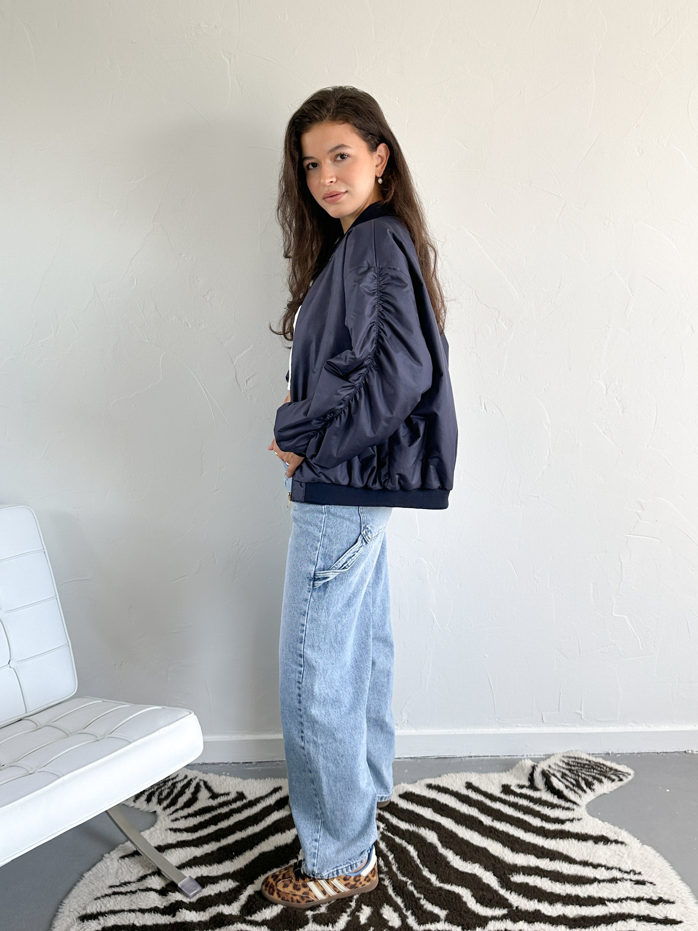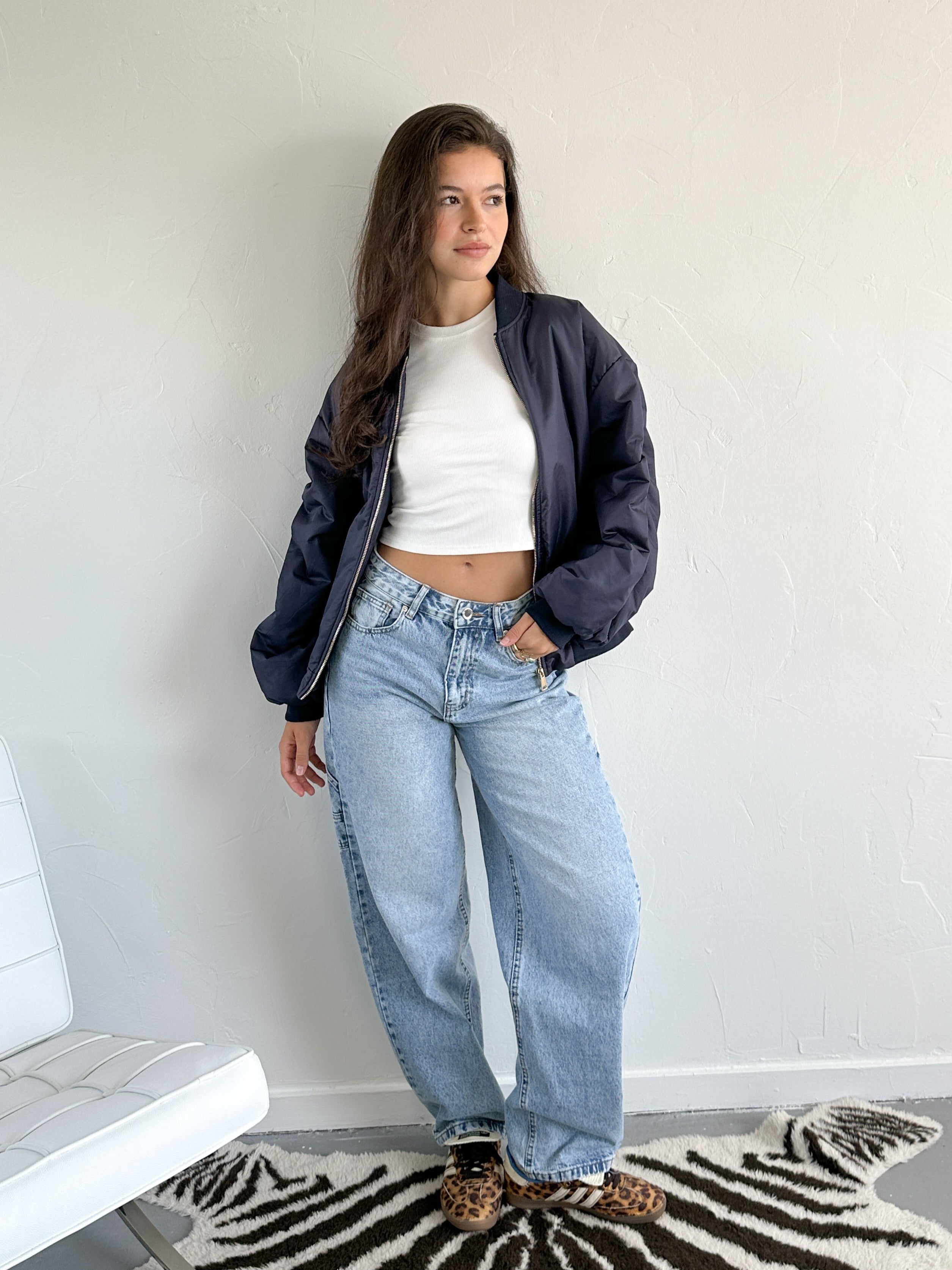 Deze Navy bomberjas is dé trend van nu. De warme, gevoerde binnenkant maakt ‘m perfect voor de koudere dagen, terwijl de oversized fit en ritssluiting zorgen voor die stoere, casual look. De rijke bruine kleur is een echte eyecatcher en makkelijk te combineren met al je favoriete outfits. Een jas die stijl én comfort moeiteloos samenbrengt.