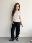 Deze broek met sporty vibe is comfy én supercool. De contrasterende twee kleuren en de strepen langs de zijkant geven ‘m die echte sportlook, terwijl de elastische tailleband en coole zakken zorgen voor ultiem draaggemak. Perfect voor een casual day out, een festival of gewoon om je outfit een edgy touch te geven.