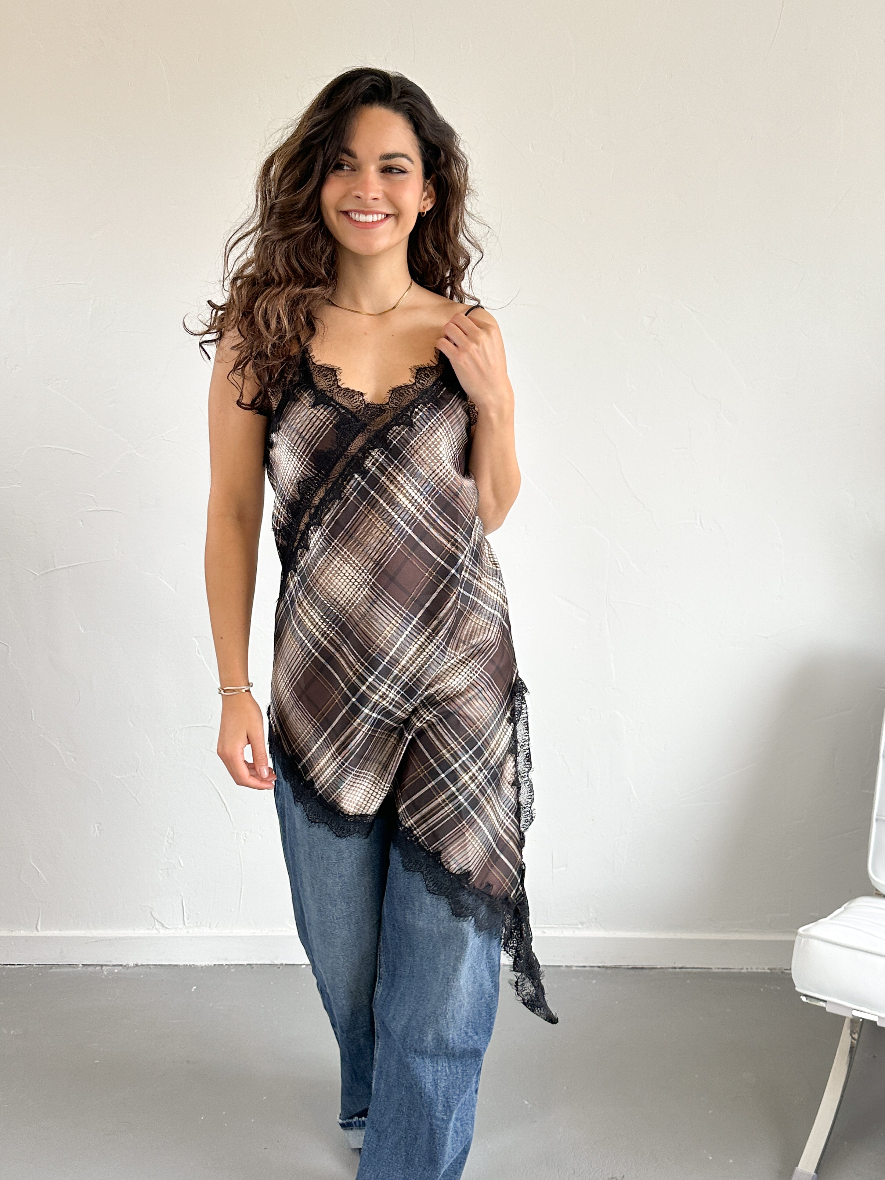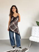Deze geruite jurk met kanten details is allesbehalve standaard. De combinatie van het ruitpatroon en het subtiele kant geeft de jurk een speelse, feminine look. De asymmetrische onderkant zorgt voor een unieke twist en laat de jurk mooi bewegen. Perfect voor een dagje uit of een etentje — deze jurk is een echte eyecatcher! ✨💋