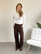 Deze pantalon is de perfecte basic voor elke dag. De rechte, iets langere pijp geeft een elegante look en maakt 'm ideaal te dragen met sneakers, loafers of hakken. Gemaakt van een soepele stof die mooi valt én comfortabel zit – een echte must in je garderobe.