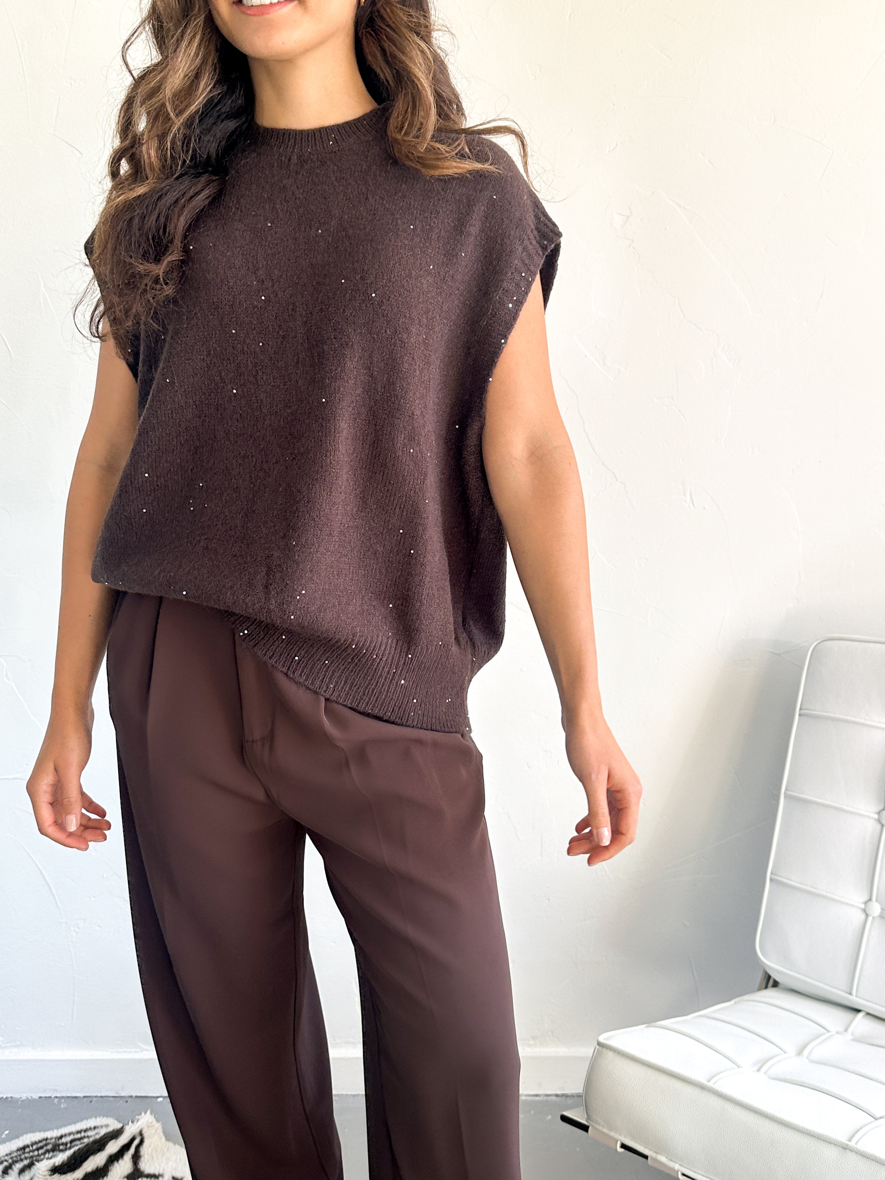 Deze glitter spencer is dé perfecte touch voor een opvallende look. De glanzende glitterdraad geeft een speelse sparkle, terwijl de mouwloze fit zorgt voor eindeloze stylingopties. Draag ‘m over een blouse, mesh top of alleen als statement piece met deze spencer ben je altijd party proof. ✨