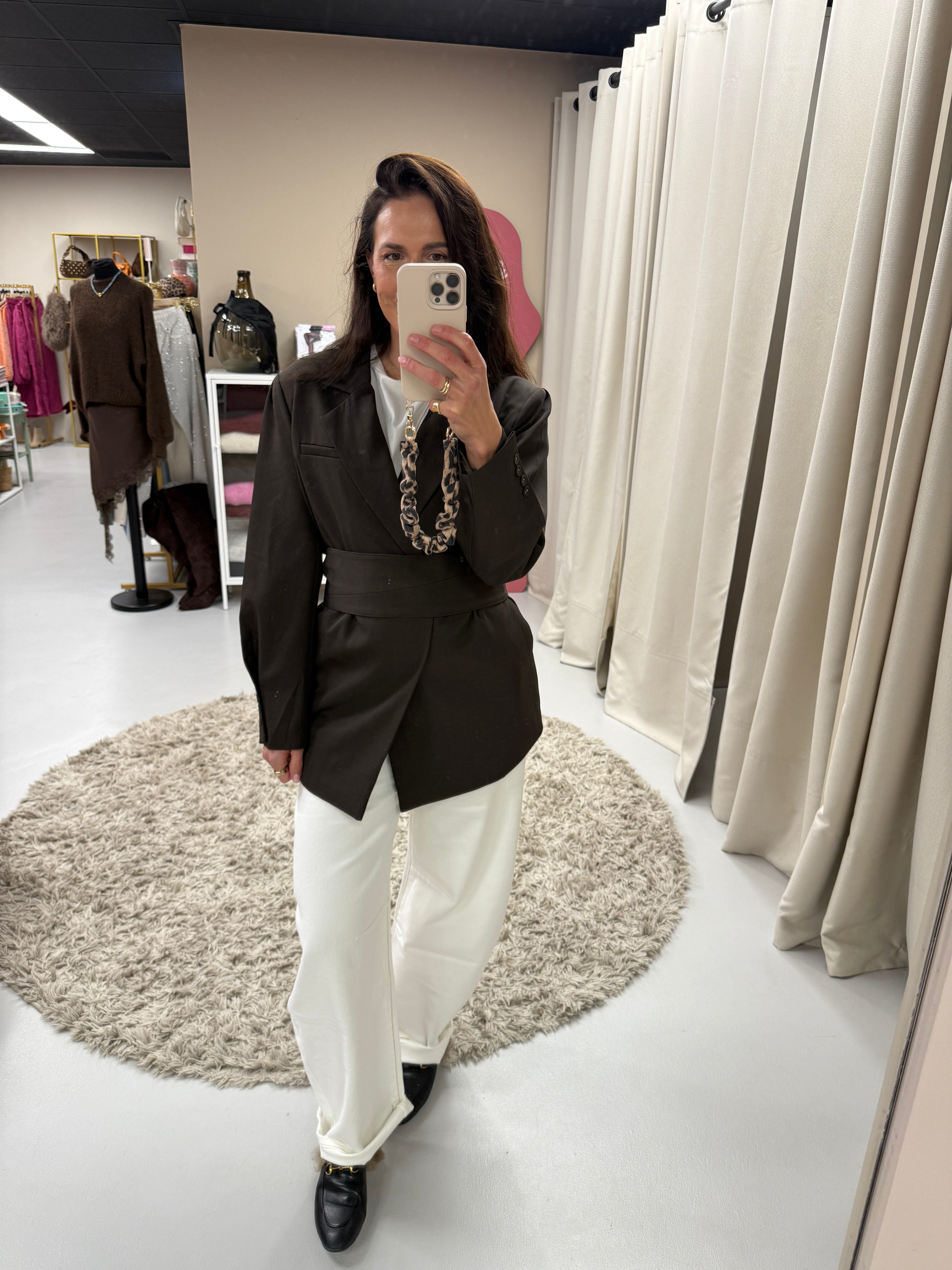 Deze getailleerde blazer met riem is de perfecte combinatie van classy en on-trend. De ceintuur accentueert je taille prachtig, terwijl de getailleerde pasvorm zorgt voor een vrouwelijke, elegante look. Draag ‘m met een jeans voor een stijlvolle everyday outfit of met een pantalon voor een chique avondlook. ✨🖤