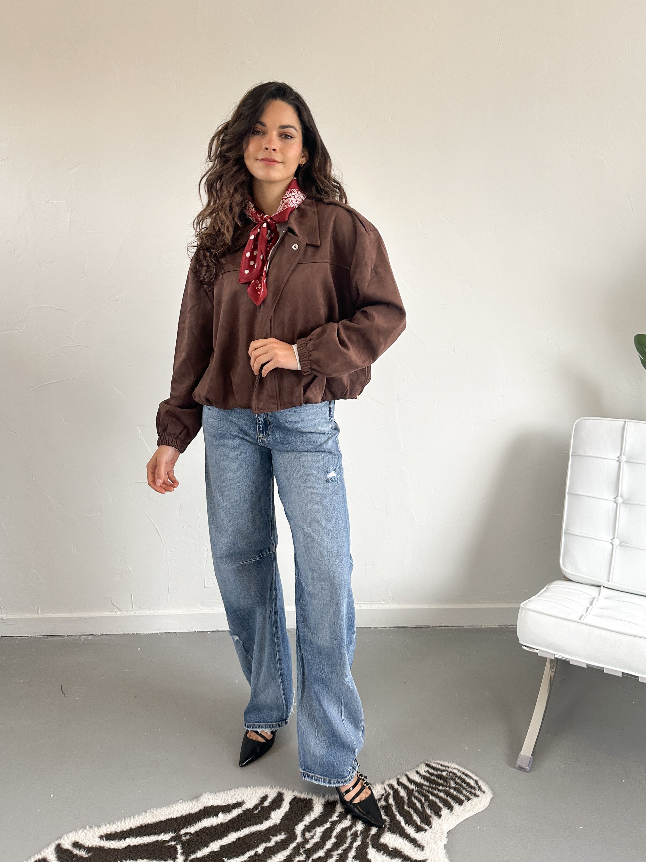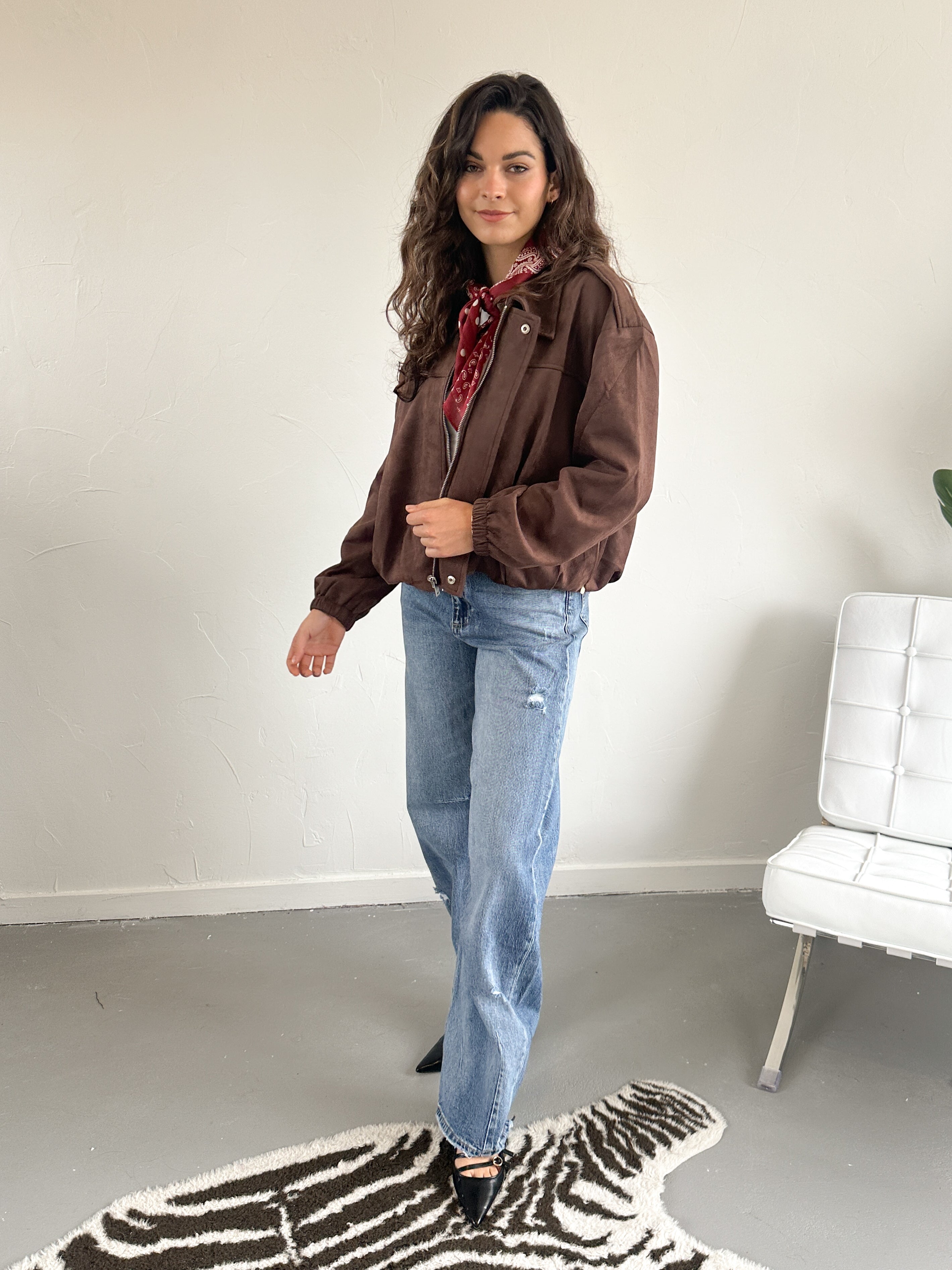 Dit suèdelook jasje met rits is de perfecte mix van stoer en stijlvol. De zachte stof geeft een luxe uitstraling, terwijl de ritssluiting en details zorgen voor een edgy touch. Draag ‘m casual met jeans of over een jurk voor een stijlvolle, effortless look – een echte must-have voor elk seizoen. 🤎