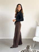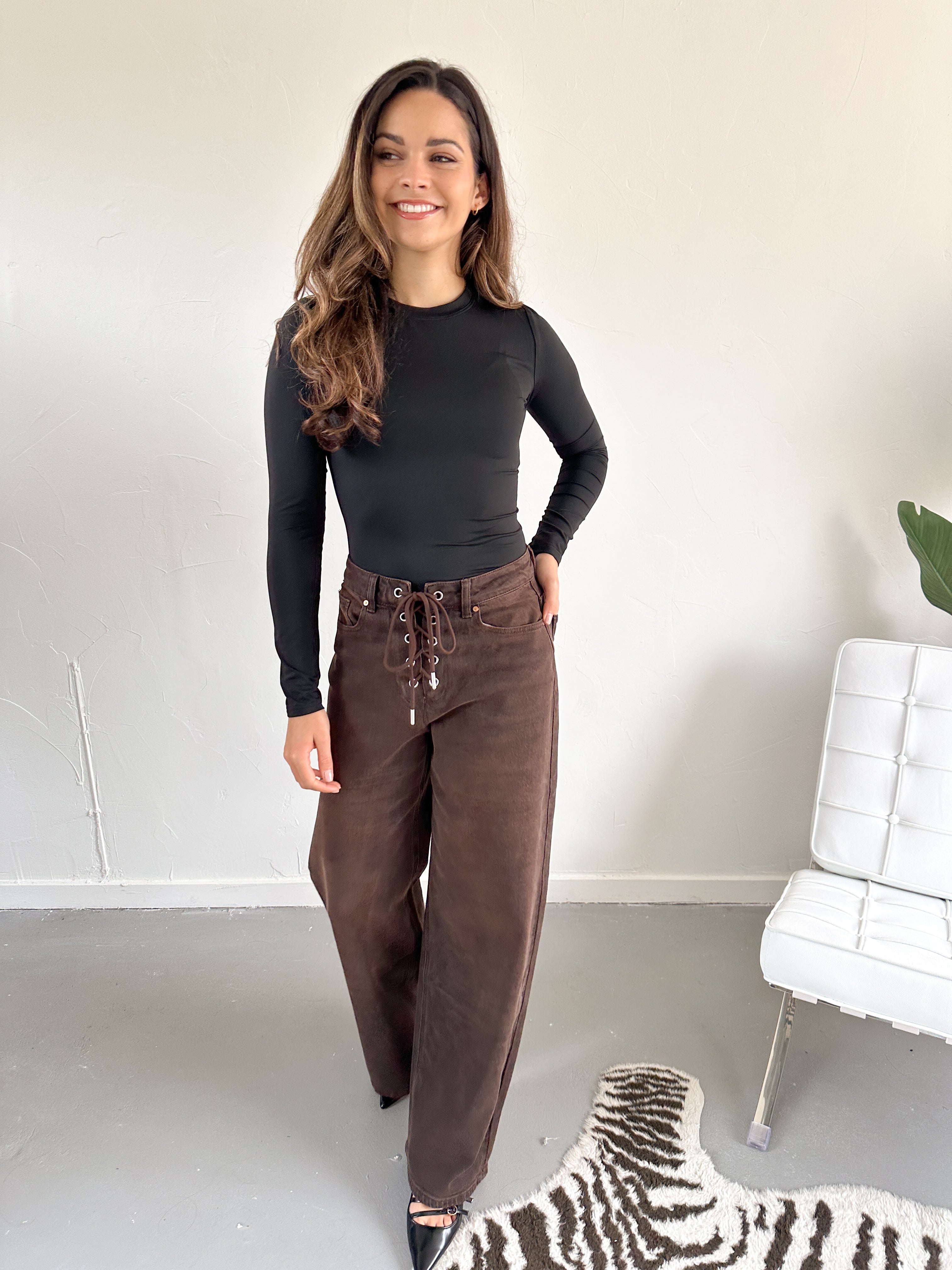 Deze straight leg jeans in het bruin met een veter sluiting is dé denim must-have van nu. Perfect te combineren met een basic top of een gebreide trui voor een casual outfit of met een blazer voor een stijlvolle twist. Een broek die zowel comfy als trendy is, win-win!