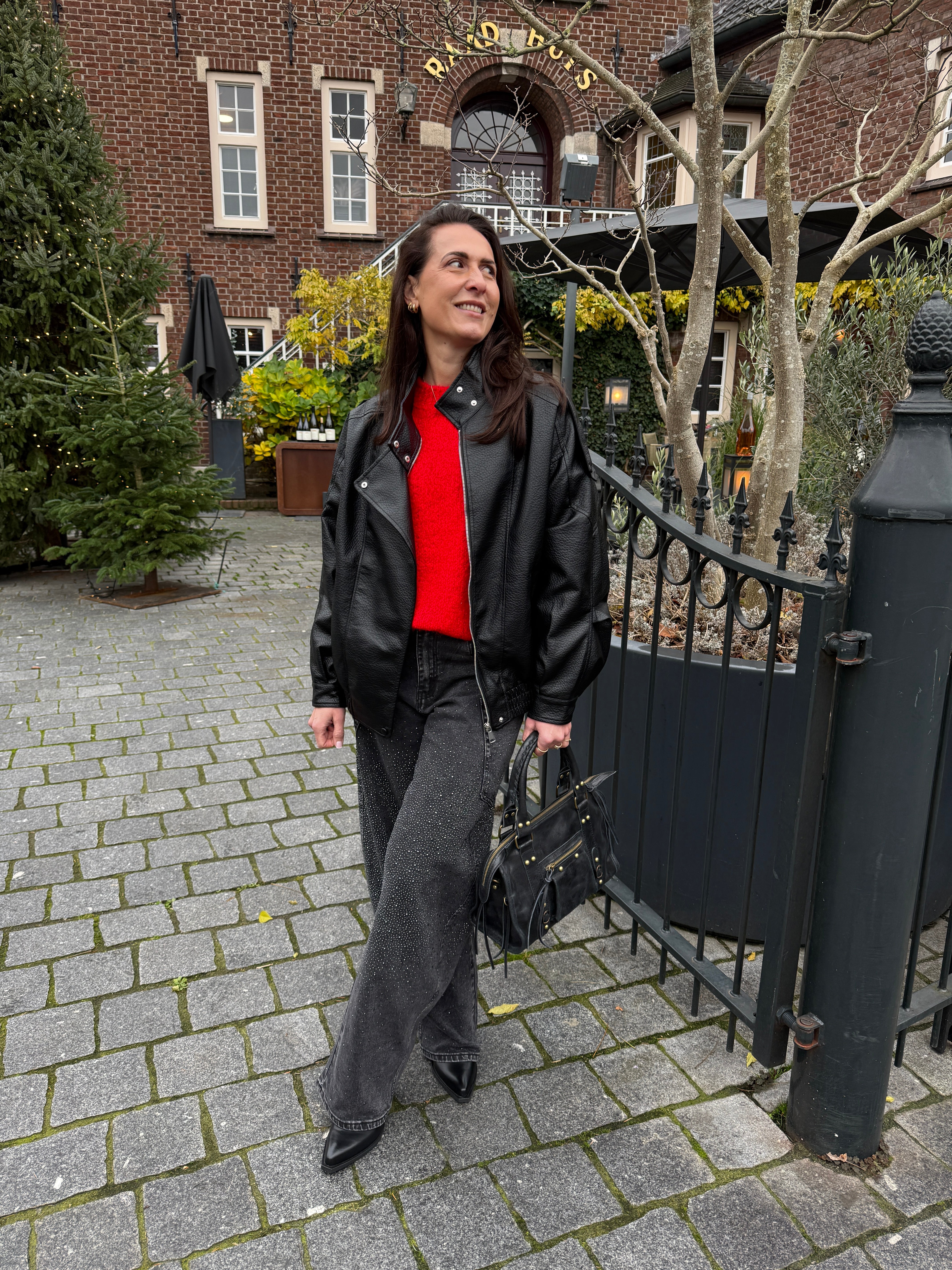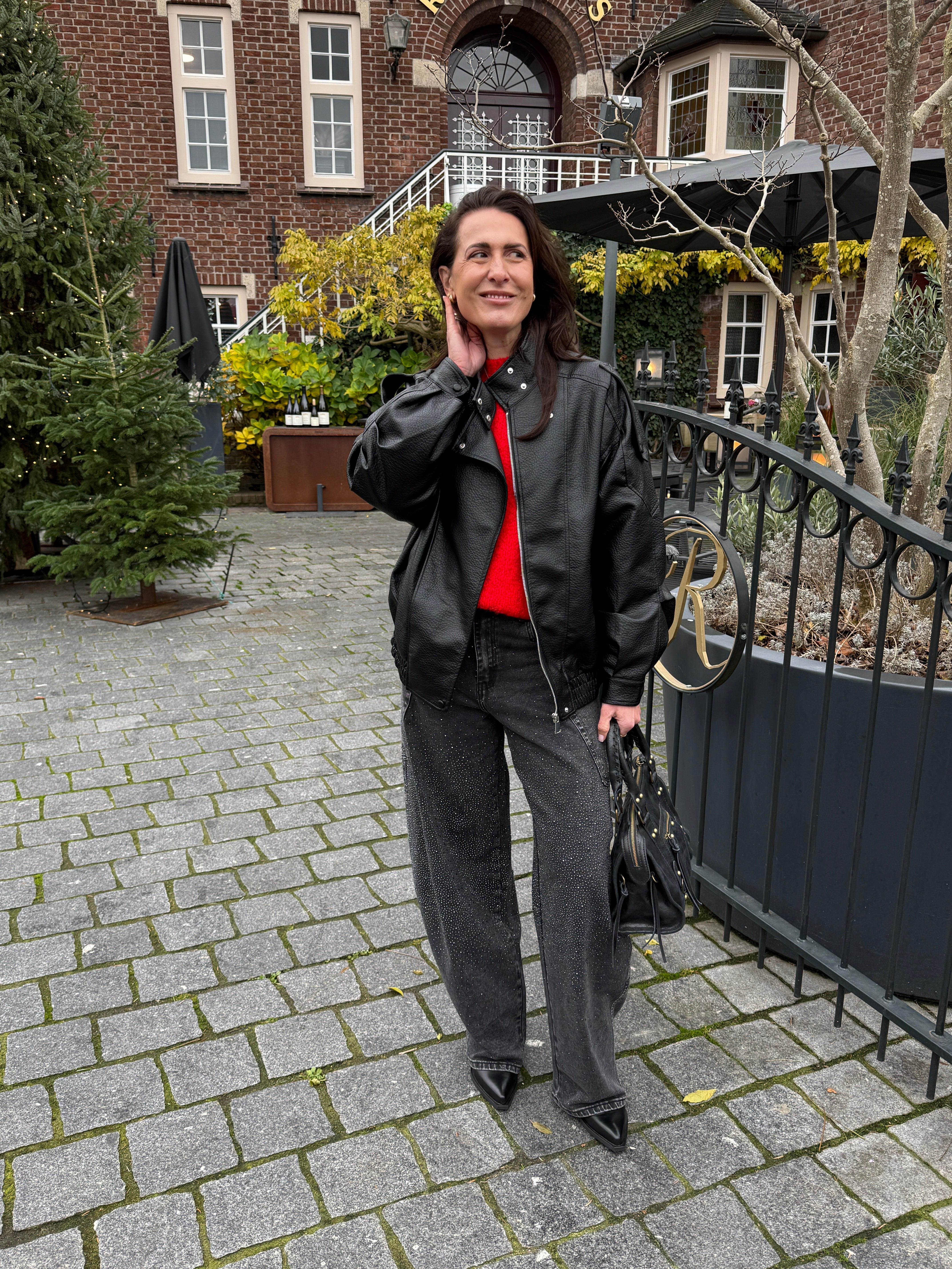 Stoere oversized jas in leather look met een moderne, nonchalante fit. De jas valt ruim voor een comfortabele en trendy look. Perfect om elke outfit een edgy touch te geven, van casual tot meer gekleed. Een echte statement jas voor het seizoen.