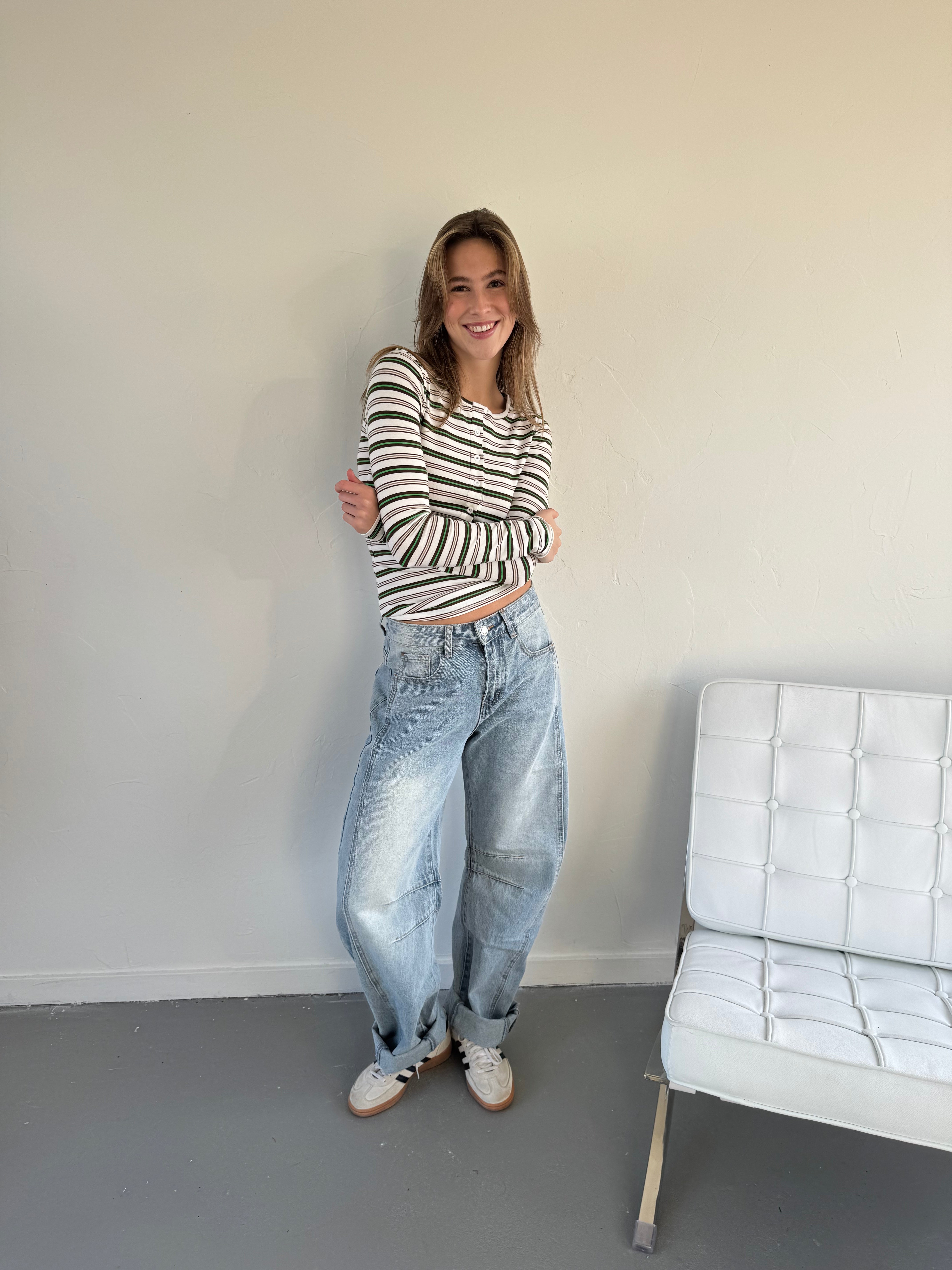 Deze stripe longsleeve met een is een echte essential die je eindeloos kunt combineren. Ideaal als basislaag onder een blazer, vest of jas, maar ook solo stijlvol. Heerlijk draagbaar van zacht cotton.