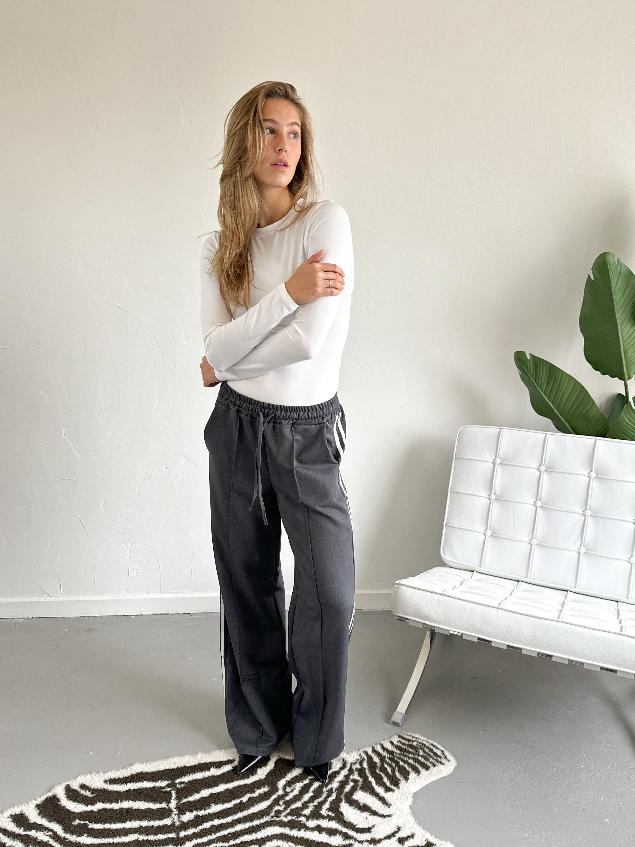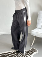 Deze broek met twee strepen aan de zijkant heeft die ultieme sporty look. De elastische tailleband en relaxte fit maken ‘m supercomfortabel, terwijl de strepen zorgen voor een trendy en sportieve touch. Perfect voor een casual day out, een travel look of gewoon een comfy everyday fit.