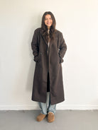 Deze manteljas in een diepe bruine kleur is een echte klassieker. De blinde knoopsluiting zorgt voor een clean en luxe effect, terwijl de lange, rechte fit de jas een tijdloze uitstraling geeft. Perfect om zowel chic als casual te dragen – een item dat je jaar na jaar uit de kast blijft halen.