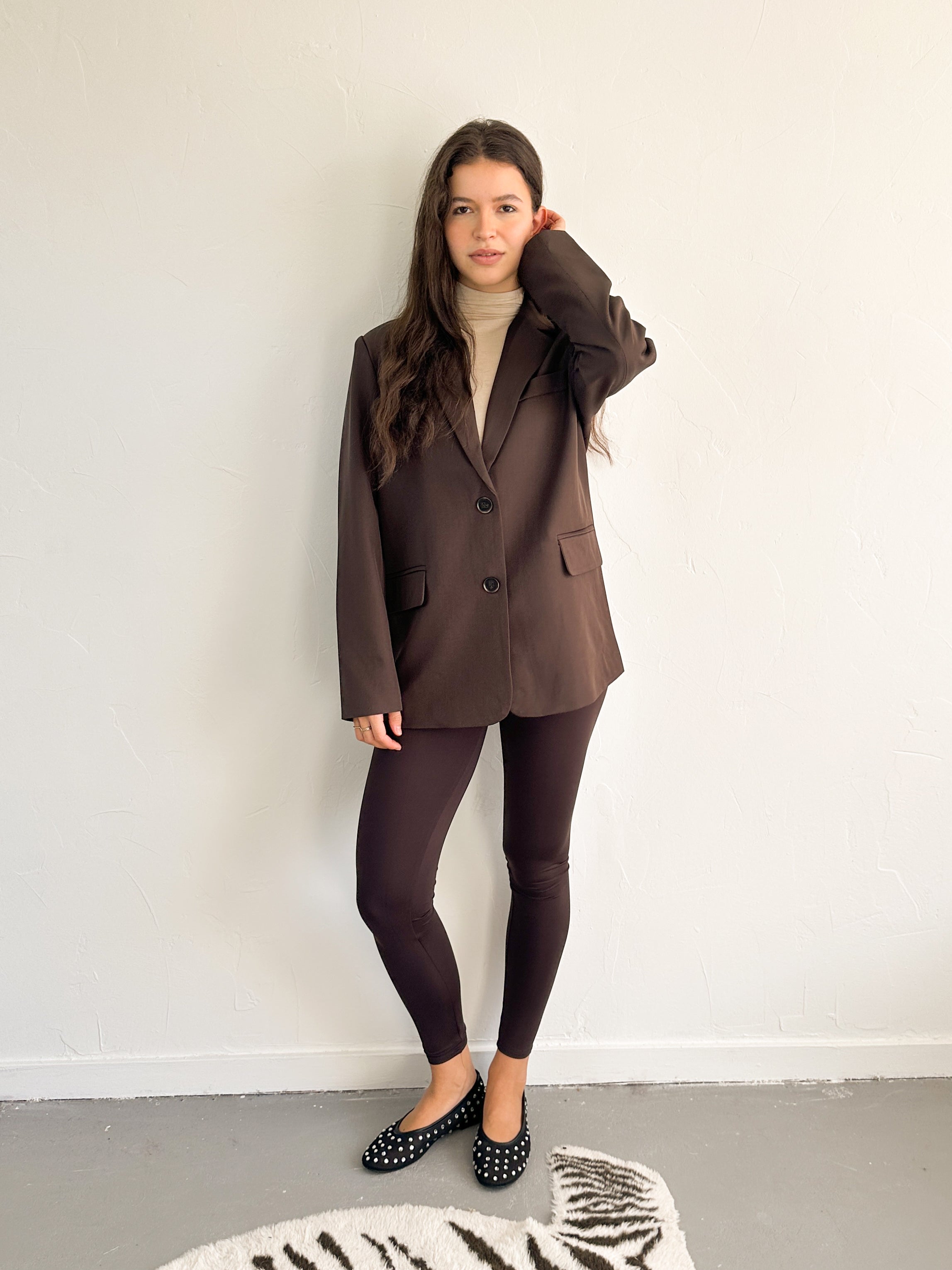 Deze bruine legging met stretch is de perfecte basic die je eindeloos kunt combineren. De zachte, elastische stof zorgt voor een comfortabele fit die mooi aansluit, terwijl de warme bruine kleur je look een trendy touch geeft. Draag ‘m casual met een oversized trui of blazer, of style ‘m chic met hakken en een top – deze legging kan altijd.