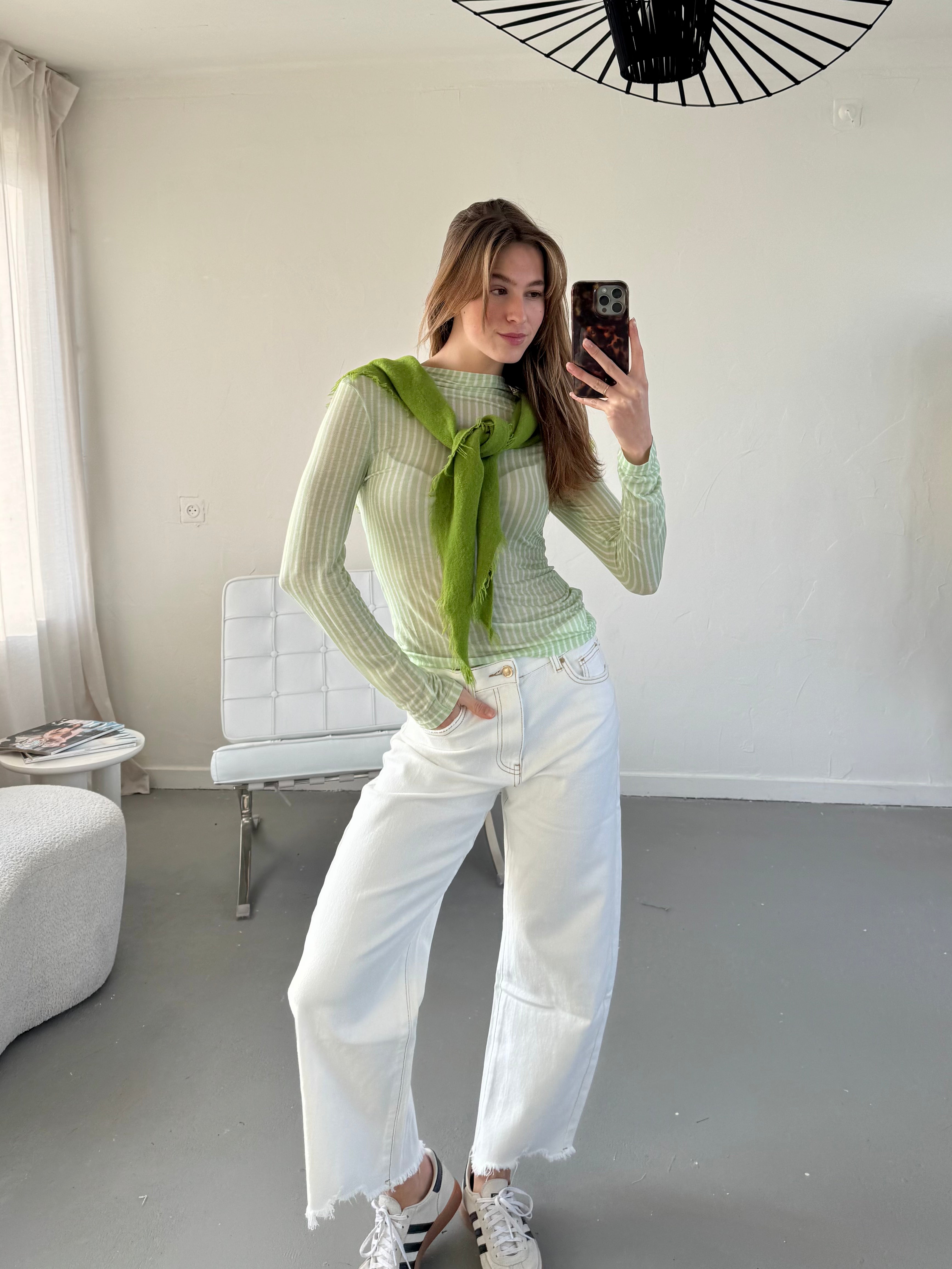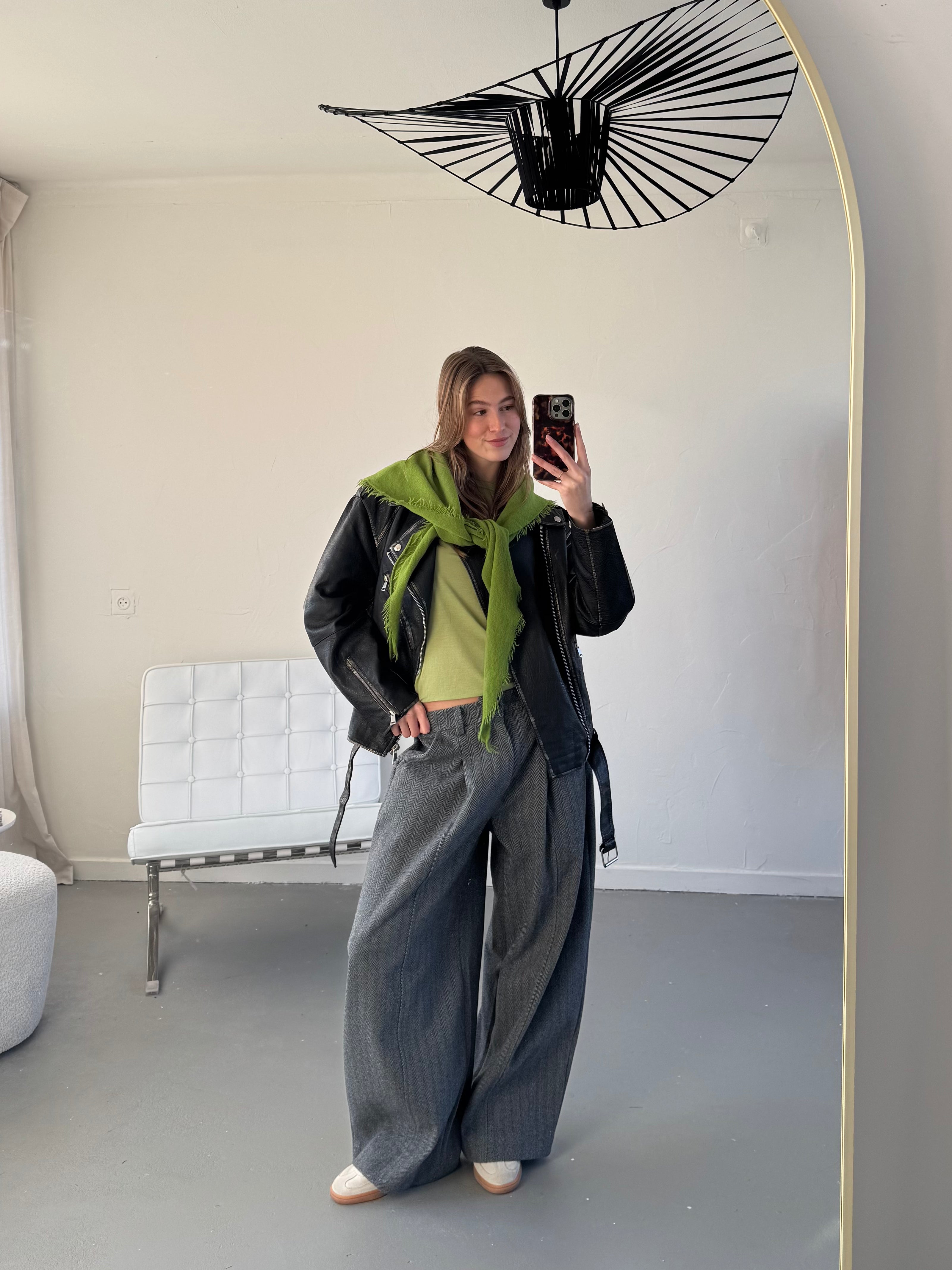 Zachte sjaal in een elegante driehoekvorm, perfect om moeiteloos te combineren over een blouse, blazer of jas. De soepele stof voelt comfortabel aan en valt mooi, waardoor de sjaal zowel praktisch als stijlvol is. Ideaal om je outfit een warme en verfijnde touch te geven, geschikt voor zowel casual als geklede looks.