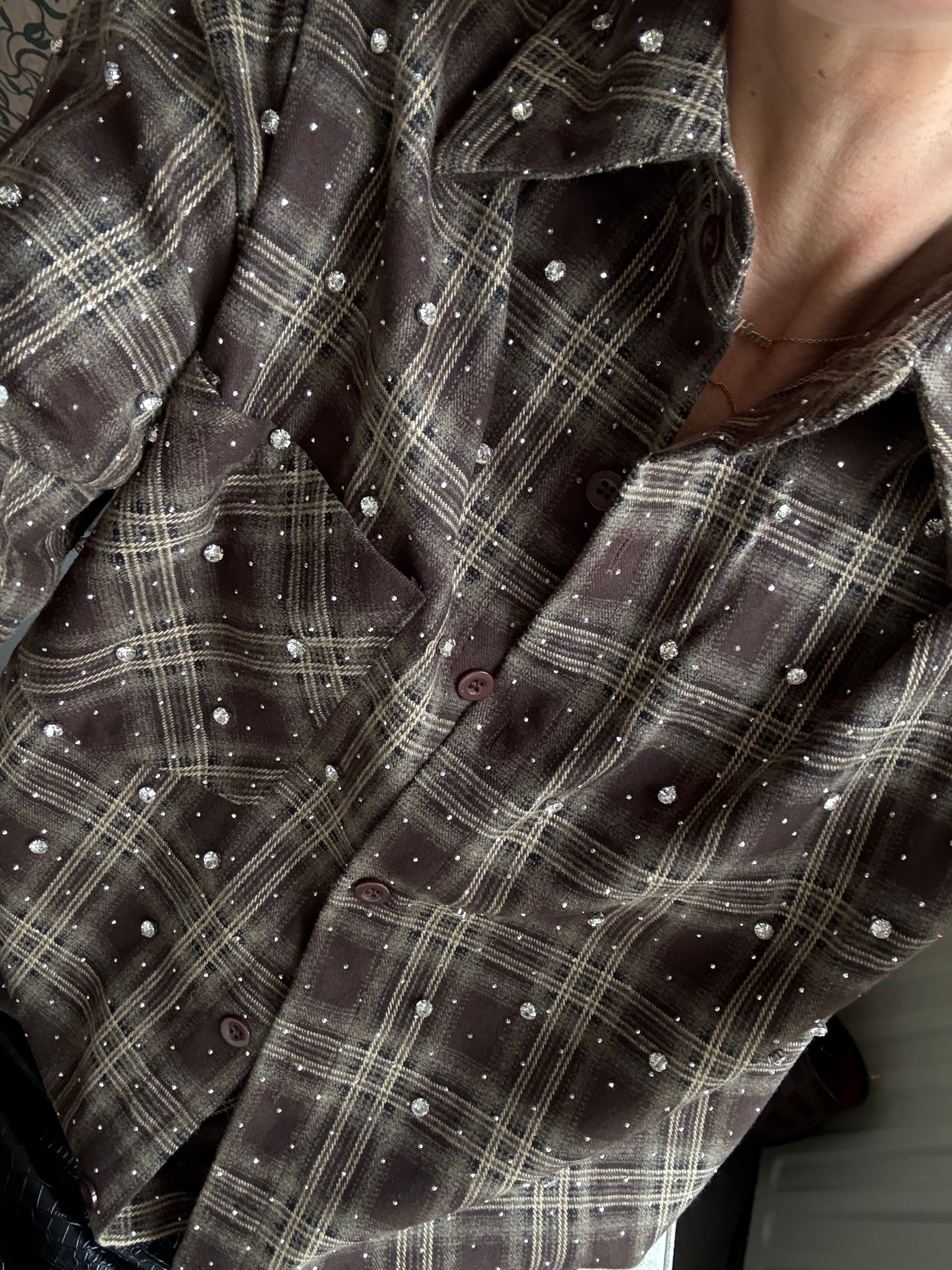 Deze geruite blouse met strass is de perfecte mix van stoer en girly. Het ruitpatroon geeft een casual touch, terwijl de strass details zorgen voor die subtiele sparkle. Draag ‘m los over een top voor een relaxte look of dichtgeknoopt met jeans of een rokje voor een fashionable fit. Deze blouse maakt elke outfit leuker! ✨