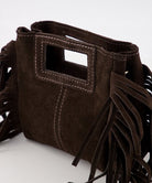 De Sylvie handtas is gemaakt van hoogwaardig 100% suède leer en afgewerkt met goudkleurige hardware en speelse franjes. Het hoofdvak sluit met een rits en bevat een binnenvakje met ritssluiting voor kleine essentials. Dankzij de afneembare en verstelbare hengsel draag je de tas comfortabel crossbody.